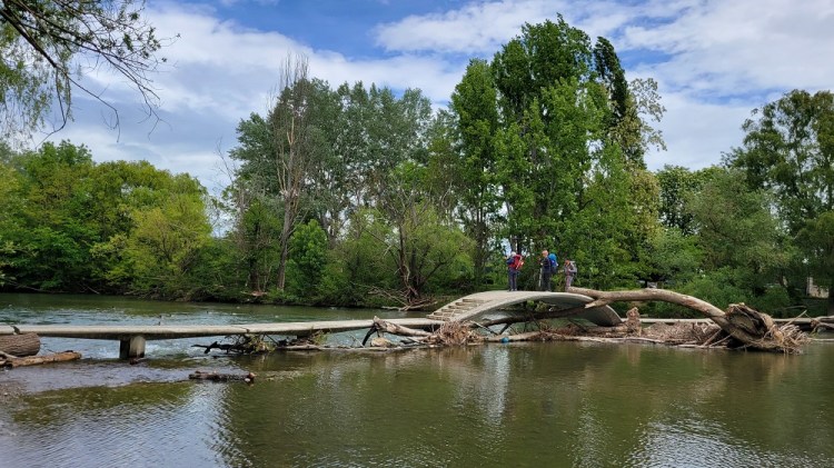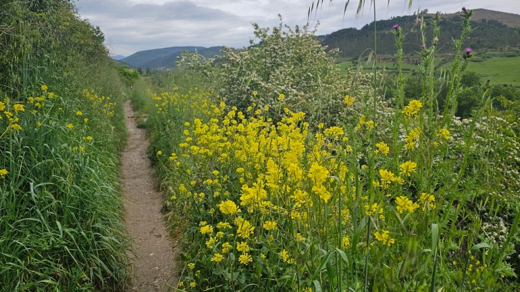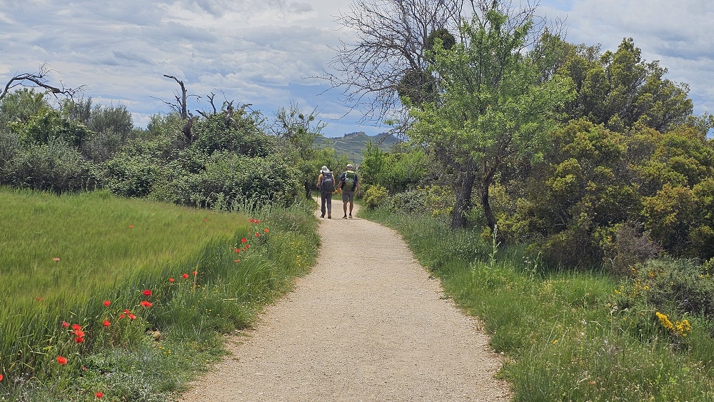 We covered 12 miles today to Larrasoana. We stopped after 4 miles for cafe con leche, chocolate croissants, a slice of Spanish tortilla (an egg, potato, cheese and onion, quiche-like, slice, but no crust) and of course we went into Zubiri (population 400+) later on for ice cream, burning it off during the final 6 miles of the day!
