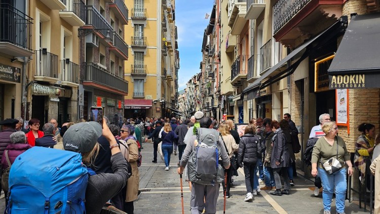 The ” it’s almost summer Saturday night” celebrations were definitely running full force in the streets of Pamplona into the wee hours. Although our room was overlooking the partyers, our window shutters drown out most of the sound but our floor roomies were coming in from 11pm till 5am this morning. So, needless to say, I look forward to a good night’s sleep…tomorrow night!