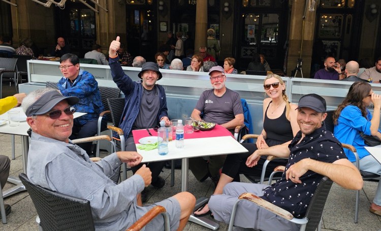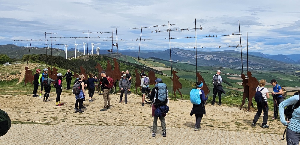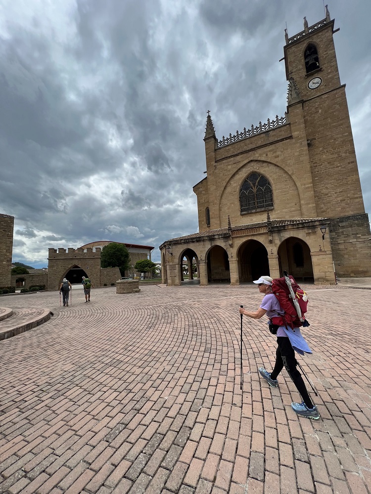 Yesterday’s “The Camino Provides” assistance from our two South African friends, now living in the UK, continued in Pamplona. I was searching for a table for the four of us, at Cafe Iruna in the very busy Plaza Mayor, when I hear, ” Elizabeth!”. There they were, at a table big enough for us all! We enjoyed a lovely afternoon meal together and said goodbye to one of them as he heads home today. Dave, who is continuing on to Santiago, and the 4 of us, parted with the heart felt assurance that our paths will cross again!