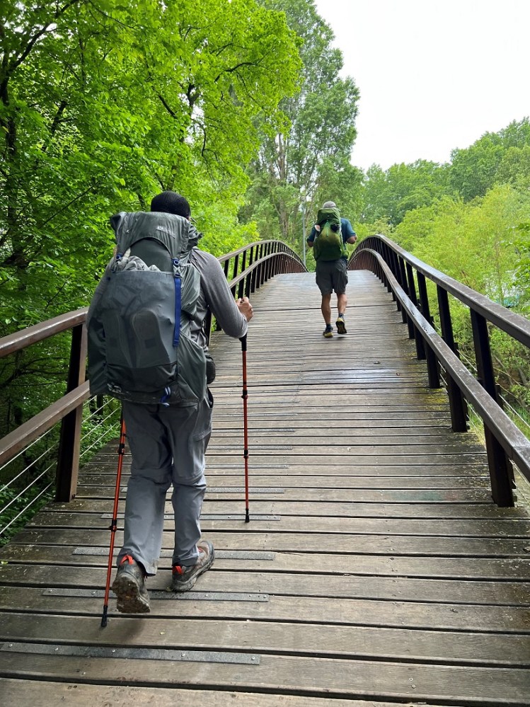 Cooper put his Camino shell on his backpack today. Hesitating at first, thinking it was a bit “hokey” as he called it, until the restaurant owner last night told him he sees the shell on Pilgrim’s backpacks as an open invitation, a way to collect information in your life from those around you…like our Alaskan elder this morning. Cooper, as we all have, was already reaping the benefits of listening to wisdom, experiences, beliefs and teachings of others on this trip, so the shell was hung.