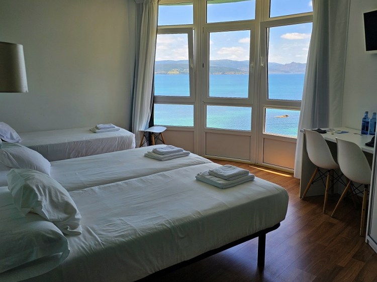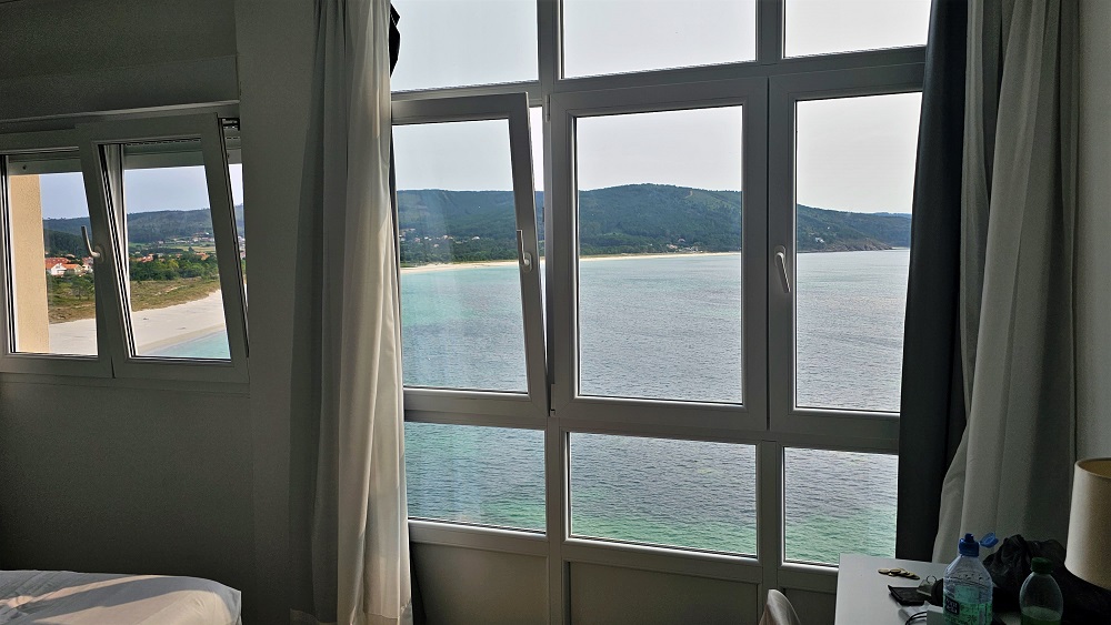 We requested a fourth night at Mar de Fisterra Hotel, a couple days ago, so today is the day we needed to change rooms. Our corner room was not available this evening. But they were so kind to allow us to stay in our current room until about 10:30AM and then switch to our next room directly. The second room is a bit smaller but just as beautiful a view!! We think it’s even a better, as we are on the 3rd floor, one floor higher than the previous room. As I have mentioned, I am sure, unlike in the US, the ground floor in Spain is floor “0”. It makes more sense. When you are born you are at “0” and then turn one as you are 12 months older so why not call the ground floor “0” and climb up to floor “1”?? We are now around the corner of the building avoiding the late afternoon sun directly in our room There are two small additional windows and we giggled…it’s like we changed hotels and are back in our “walking in the morning” mode again, for our last two days on the Camino from Fisterra to Muxia beginning tomorrow! I am well rested and we have been walking throughout the day from one end of the town to the other and over to the other side of the peninsula, so I am ready to tackle some hills on a couple of slow moving 9 mile days to Muxia.