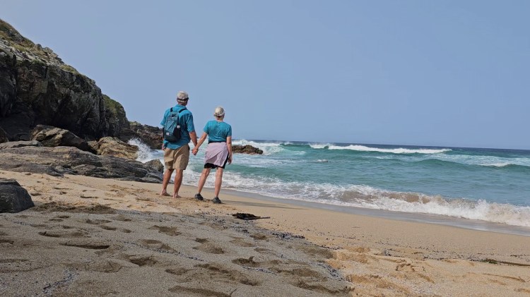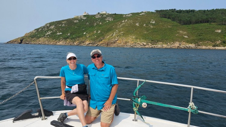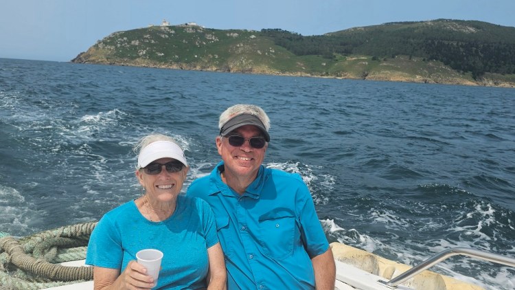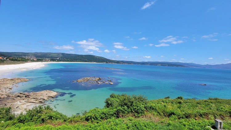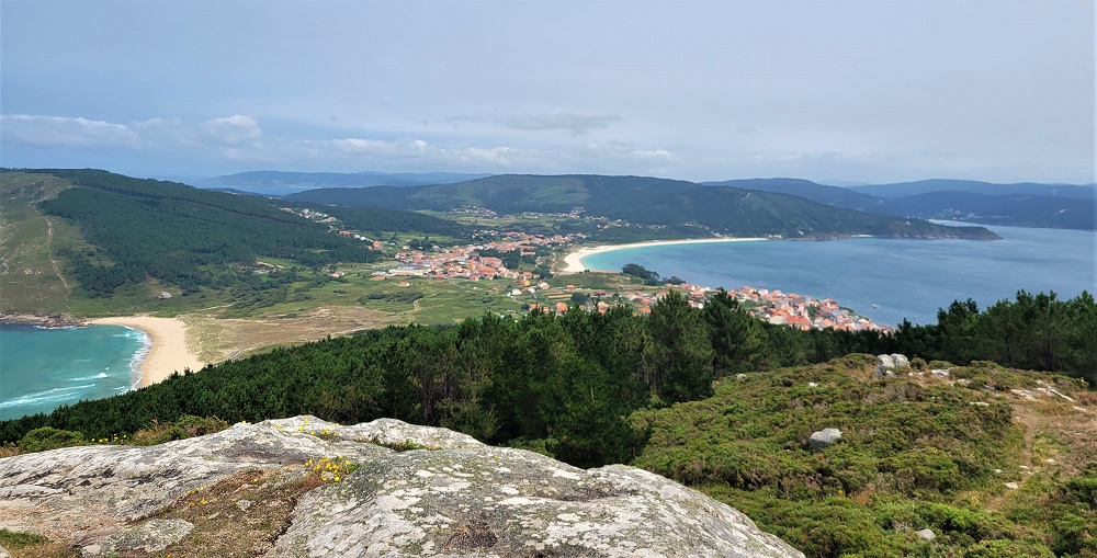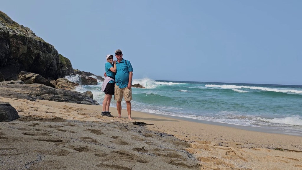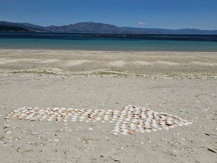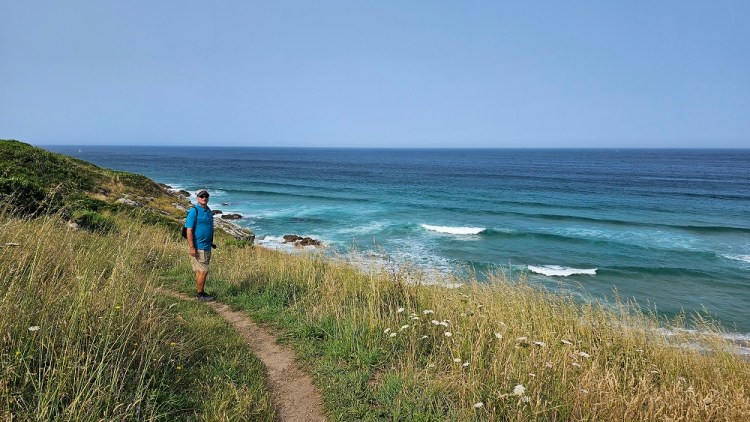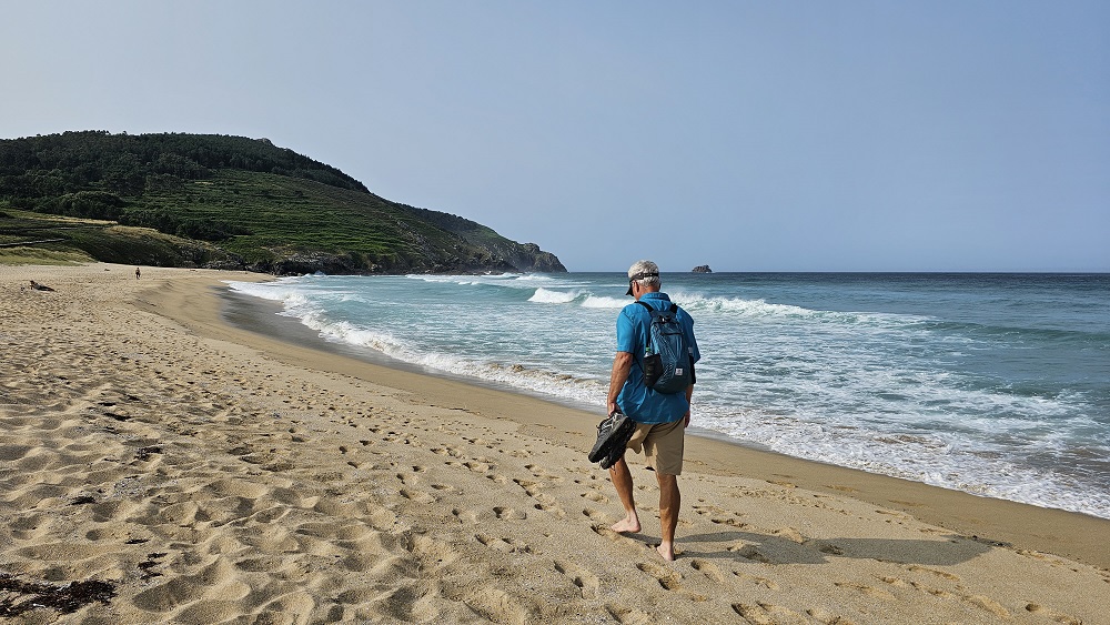 We had breakfast, relaxed and headed over to the other side of the cape to Mar de Fora, less than a mile from our hotel. The waves were crashing, lots of sand and only a few people there. The marina and main town face a bay or inlet, the other side to the west is open ocean. If you could swim a straight line from Mar de Fora for 3,000 miles, you would end up on the shores of Maine 🏊♂️🙃 We’ve been to that beach on past visits to Fisterra but the way we approached that side of the cape and the trail we took back to town were new to us.