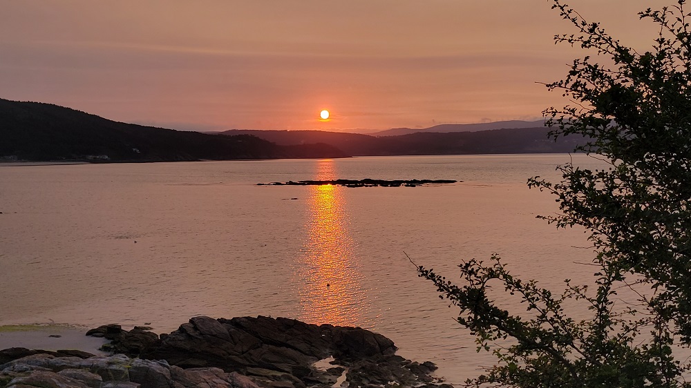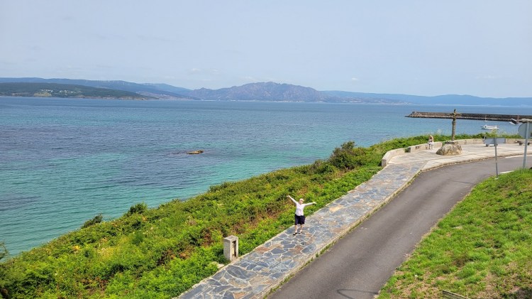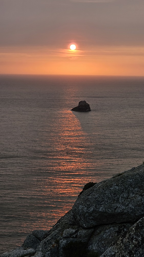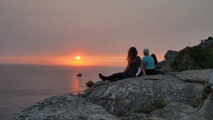 As we deboarded the motorcoach, we saw Steve and Jessie awaiting their bus trip back to Santiago and then home to the state of Georgia. We had dinner with them on day one and have been reconnecting for 5 weeks off and on our individual Caminos. Ninke found an Albergue and planned her return trip back to the Netherlands. We all ate outdoors (as we always do) this time by the marina in Fisterra. We were joined by another pilgrim, Julius from Germany, whom we have traveled with off and on for a few weeks and reconnected out here. After agreeing we would all meet up later that night (10PM-ish), 2.5 miles from our hotel at the Camino 0.00 marker for sunset over the Atlantic Ocean, we parted ways. We headed to our hotel room ½ mile from town. Mar de Fisterra, is where we stayed in 2015 and 2016. 2019 we stayed in a different hotel in town.