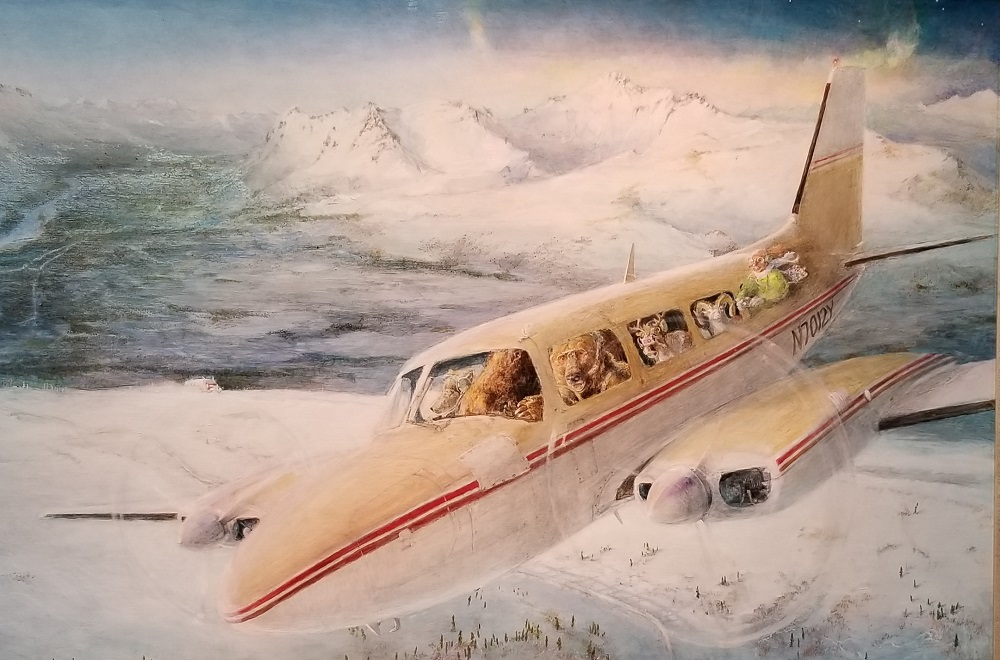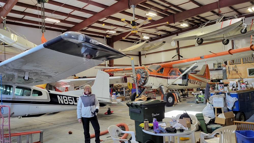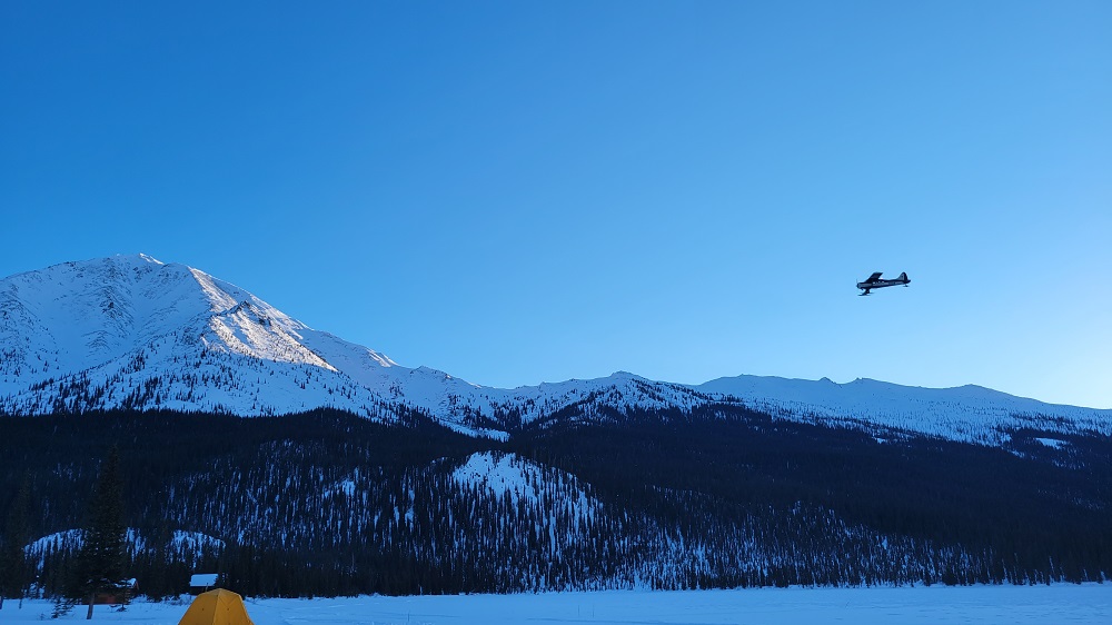 Today’s the Day! We are so excited to fly to Iniakuk Lake Wilderness Lodge. It’s 6 miles south of the southern border of Gates of the Arctic NP. We began by flying 200 miles, roughly 2 hours flight time, in a 1958 De Havilland Beaver. Sherry, Craig and I sat snuggly together in the middle of the plane with the pilot, Dirk, and Gary up front. The back of the inside of the plane was packed with supplies for the lodge and our limited luggage for the four-night stay, literally in the Alaskan wilderness, 60 miles north of the Arctic Circle.