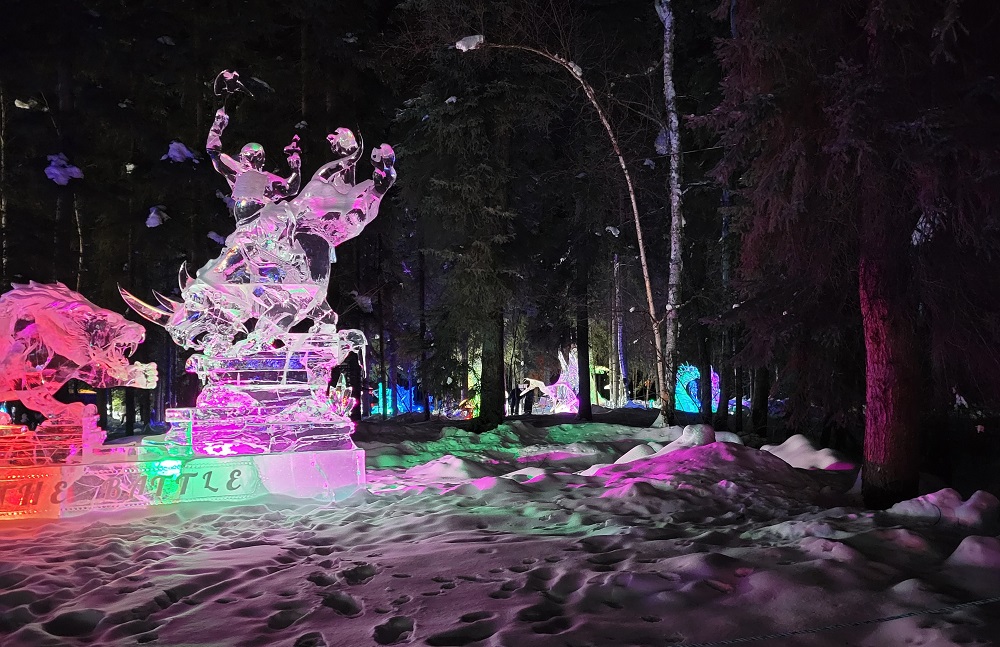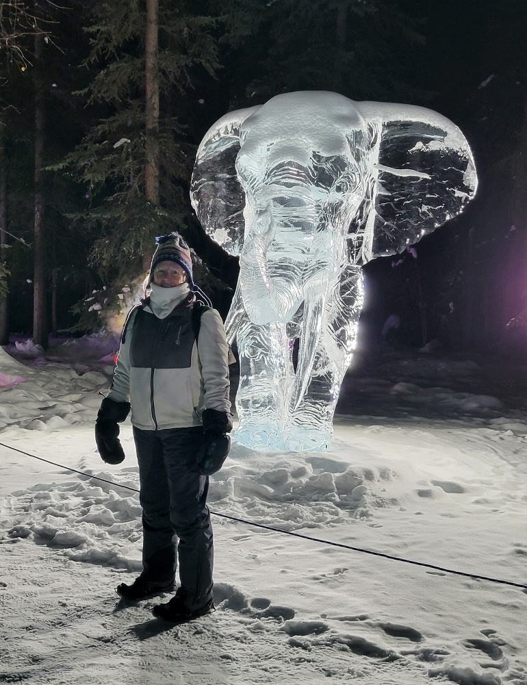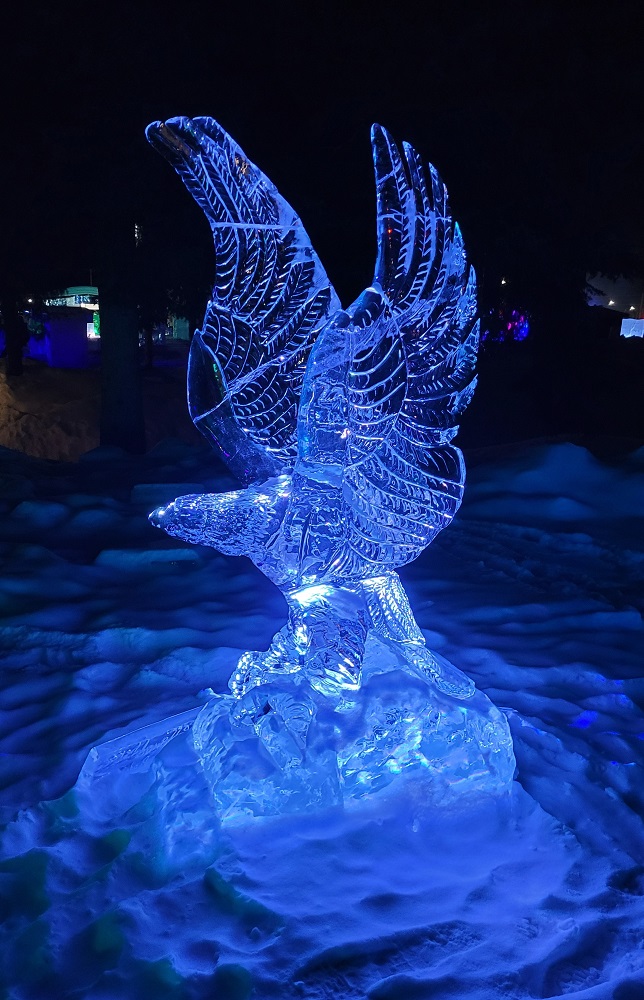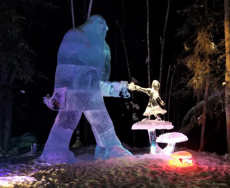 After a short but good night’s sleep, we caught up on our journal, did laundry and then headed out, on foot, the 1.5 miles to the Fairbanks Alaska Public Lands Information Center inside the Morris Thompson Cultural and Visitor Center. We were able to speak to park rangers, an Aurora Borealis specialist, and support the state of Alaska Parks in the gift shop. We stamped our national parks book with the dated Gates of the Arctic National Park ink stamp, although we are not there yet, because there is no visitor center at Gates of the Arctic NP. We had lunch in downtown Fairbanks and then later met up with Sherry and Craig to head to the Ice Alaska World Ice Art Championships which is best described as magnificent, creative and magical. Enjoy the slide show.