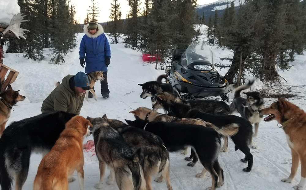 Wow, what a day. The dogs are amazing. Neon, one of the retired dogs has completed two Iditarods. Evo – Elizabeth’s lead dog going mushing into Gates of the Arctic NP, was the last dog cut from Brent Sass’ Iditarod winning team this year! We had fun following the news about the 1000 mile dog race from Willow AK, outside Anchorage, to Nome AK. Brent crossed the finish line hours after we returned from our mush to the park. Brent and his team had to navigate 50 mile per hour winds as they made their way across the ice, heading to the coast in Nome. All three guys here at the lodge know Brent and were extremely glad he won. Thom cares for and trains several of Brent’s dogs, like Evo. Evo was bummed, she was not on the team at the moment Brent and the rest of Evo’s teammates crossed the finish line. Elizabeth was honored to have her on her team!