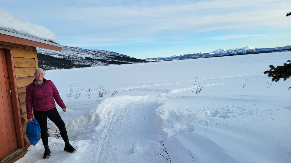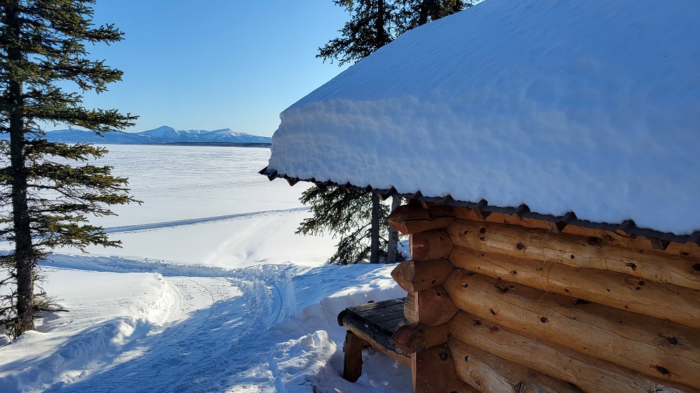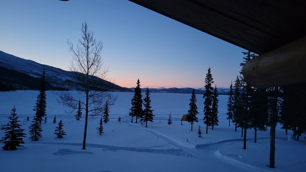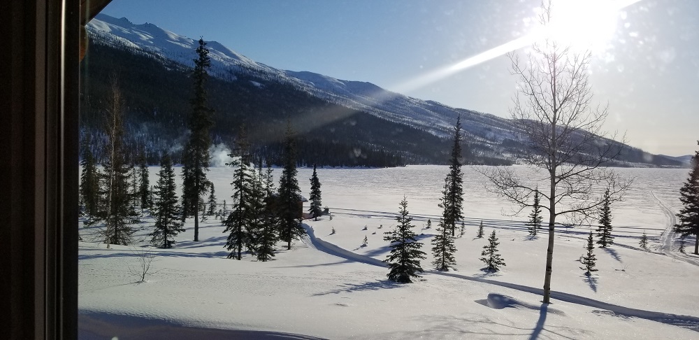 Returning to the lodge, Sam, the cook and all-round helper to John, served an amazing Alaskan Halibut, fresh steamed green beans, spinach salad, brown rice and cooked fresh carrots. Yum! He’s been baking cookies and there’s snacks available all day long with coffee, hot chocolate, and tea always available. They have large Yeti mugs for you to use during your stay. The water is brought up from the frozen lake. The water in the lodge is completely frozen in winter so there’s an RV style manual toilet in the bathroom or you can use the outhouse behind the lodge if you wanted to boast you used it in 30 degree below zero weather to your friends! Sherry put it beautifully when she said, “This is doing it real Alaskan wilderness style. This is not a cruise!” We’re all loving it!!