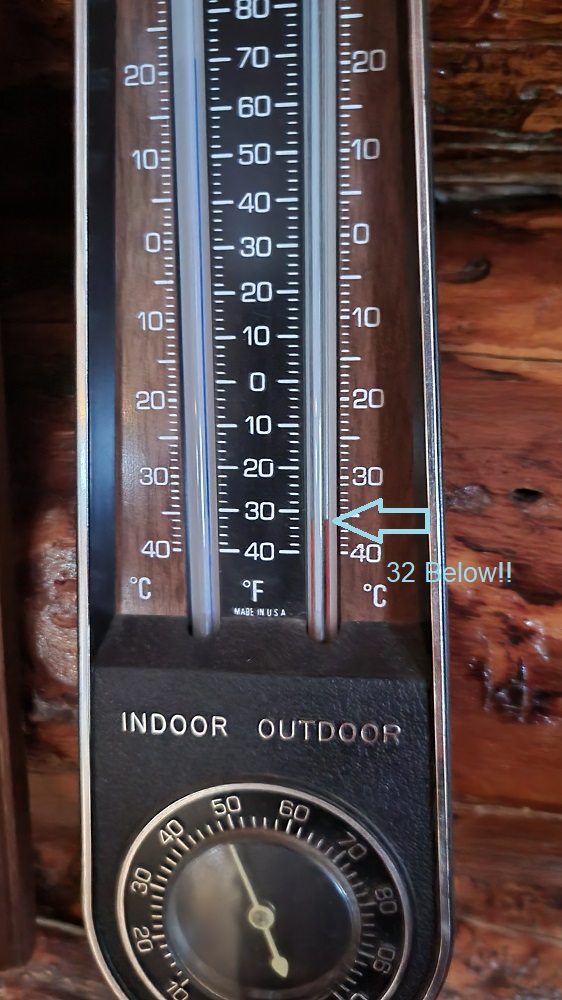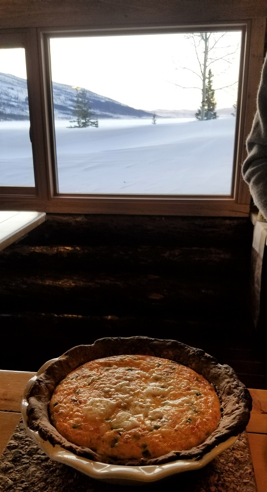 The smell of coffee brewing and quiche baking seeped through the floorboards making it the best alarm clock ever. Although the thermometer reads “only” 2 below, some 30+ degrees warmer than yesterday’s morning temps, the wind chill of 20 below makes it feel colder.