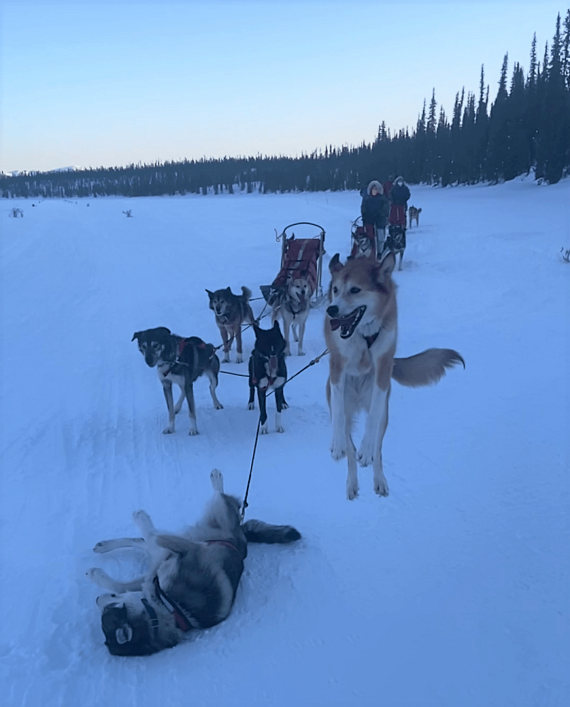 Elizabeth and I both managed the return trip with no crashes. I think that was a combination of us having a bit of experience and the dogs being tired and going a little slower. Elizabeth did an awesome job driving her team through the many bumps and turns while weaving through the trees on the narrow path. What an amazing day.