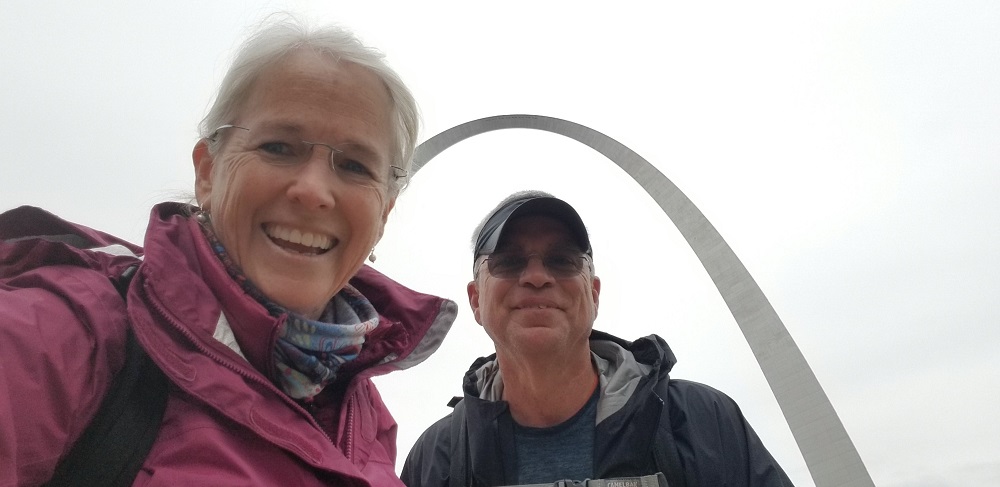 After the tram ride I watched a great movie on the making of the arch. Having a construction background I found it fascinating. There were many ingenious techniques used to build the arch since this wasn’t a typical construction project. There were no serious injuries during the construction, which took place during the early 1960s. They build the two legs skyward simultaneously and joined then with a final piece in the middle. An amazing feat. The arch can sway up to 18 inches during high winds. Elizabeth was fine watching Rangeley while I went up.