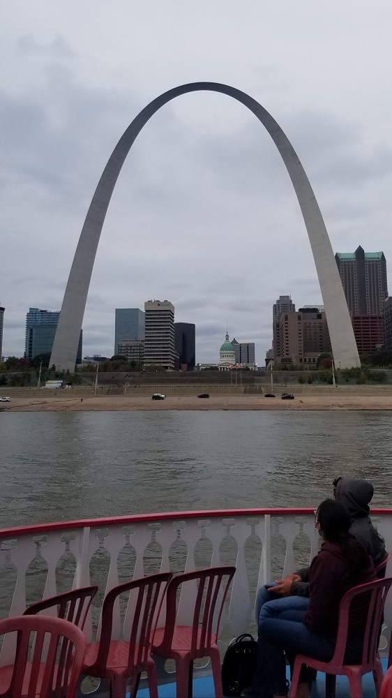 We arrived in St Louis, MO by about 1pm and checked into Hotel Indigo, an IHG hotel, a short walking distance from Gateway Arch National Park. This park is the only one that sits in the heart of a large city. My ankle injury from yesterday slowed me down, but we were able to walk the 3/10th of a mile from our hotel, through the park and enjoy a prescheduled river boat ride on the Mississippi River. Pics attached.