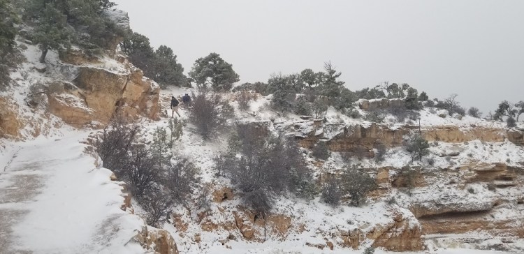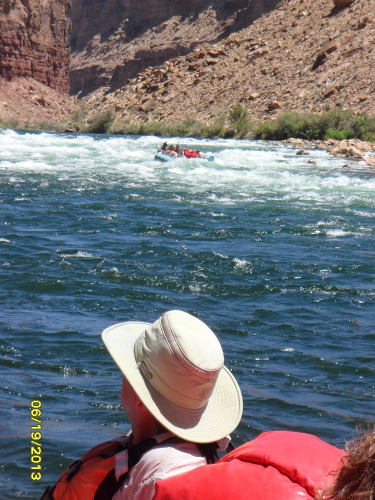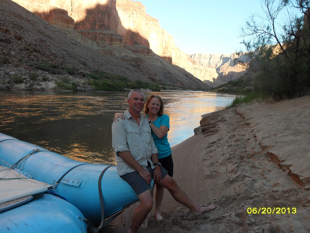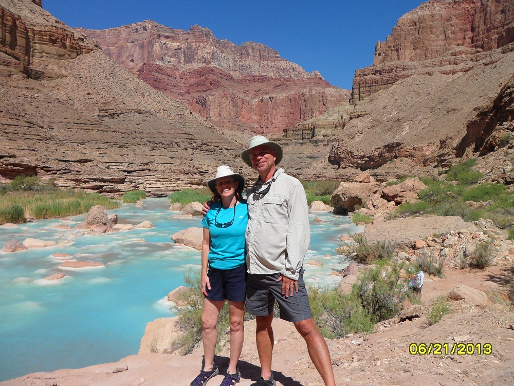 Last night’s low temperature was in the upper 30’s. Today’s top of the rim temp is going to be high of 83. The temperature at the bottom of the canyon, at the Colorado River today: 106. With the 5000 vertical feet you need to hike in each direction and the fact you walk down first and return nine miles walking up, many people underestimate the possible fast dehydration through low humidity, heat and a hiker’s exhaustion from the higher altitude of 7 thousand feet at the top. I personally have only hiked up Bright Angel Trail, several years ago, in June of 2013. I took a 4-day Colorado River rafting trip with Gary and friends. We slept on cots (no tents) in the day time highs of 90 degrees on the banks of the 40-degree Colorado River. (Nights did drop to about 60) The guided tour provided the boats, food and cots. We all hiked out from the river, the 9 miles up 5000 feet to the South Rim. After reviewing the pictures, I would love to do that again!