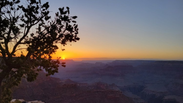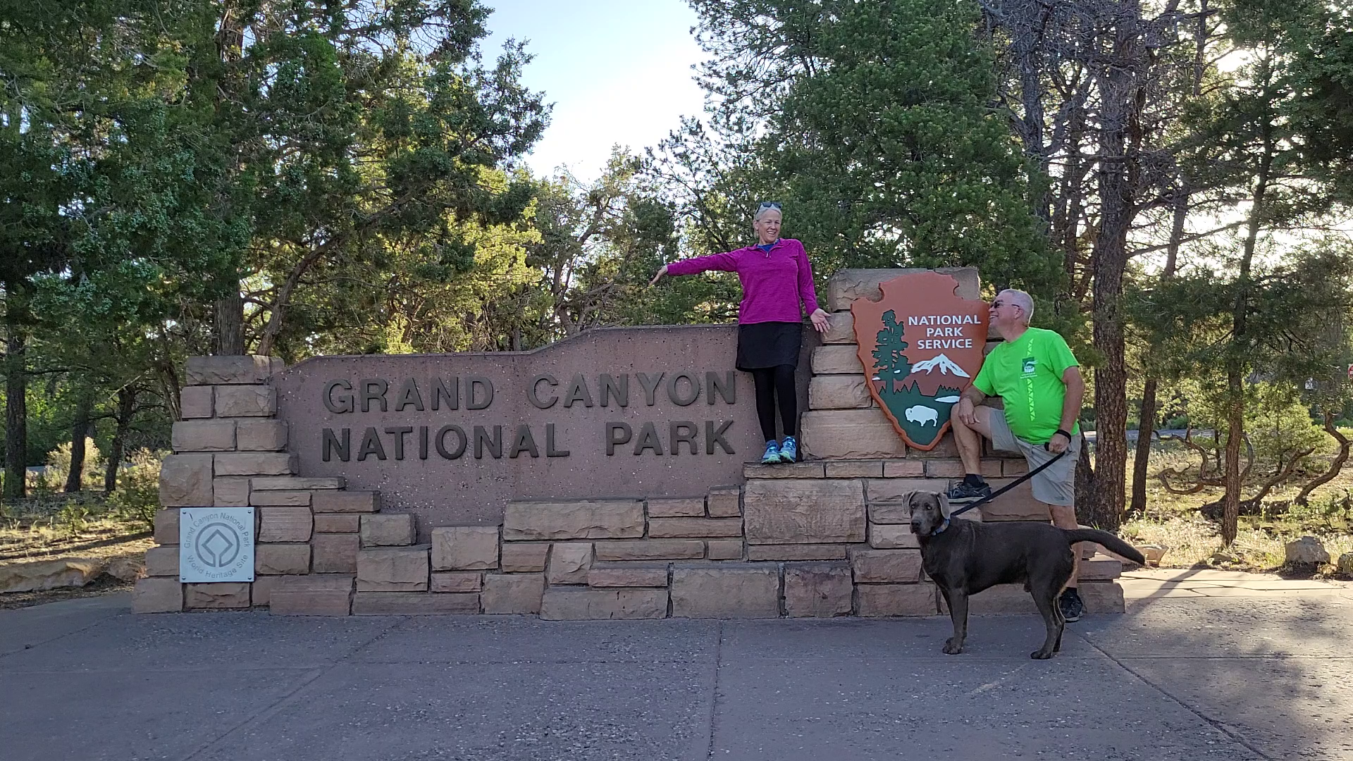 Gary was admiring our United States map on our living room wall. All of the park pins for the lower 48 states are in place… except the Grand Canyon. It bothered Gary seeing the one park, in our home state of Arizona, empty, glaring at him. We decided to do an official park visit to get our pin, post card, take Rangeley, capture some great nature and scenery pictures and snap our traditional picture with all three of us at the entrance sign of Grand Canyon National Park!