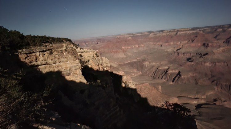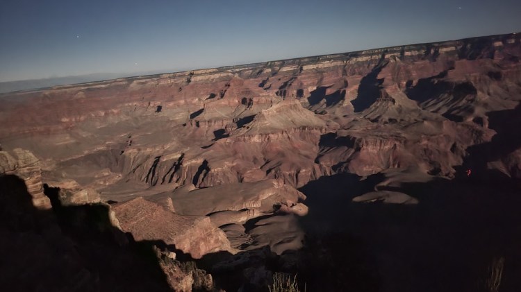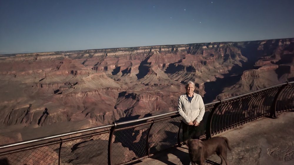 We continued on to Mather Point for some 9:30PM nighttime pictures as our last stop. Enjoy! They seem to be the best shots of the trip! The camera on Gary’s phone seemed to eliminate some of the smoky fog. All the canyon pictures were in complete darkness, under the full moon, using a three second exposure. Gary, used the 33 mm camera to capture a couple great shots of the moon as well!!
