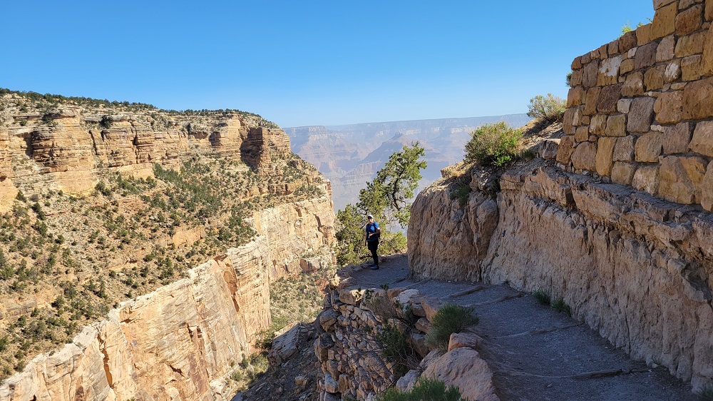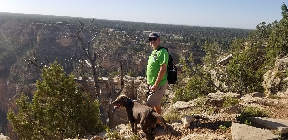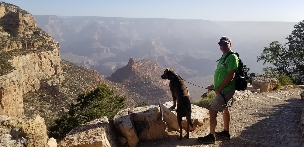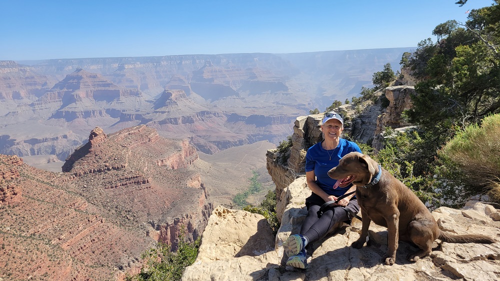 Gary – I have been to the Canyon 20+ times since we moved to Arizona 25 years ago. Pretty much every spring the past 12 years I have hiked to the Colorado River and back with friends which is almost 17 miles with 5,000 feet elevation gain. We always do a loop, going down South Kaibab Trail and return to the top via Bright Angel Trail. Twice I have hiked the 23.5 miles from the North Rim to the South Rim. Below are some photos I took from the past few years while on these hikes. In 2013 Elizabeth and I rafted the Colorado from Lee’s Ferry to where the Bright Angel Trail begins to head up the 8 miles from the river. Since Rangeley is with us on this “official” visit, we cannot take him below the rim. Dogs are allowed pretty much anywhere above the rim though, making the Grand Canyon known as one of the more dog friendly national parks, especially considering it is the 4th most visited park with 4.5 million visitors in 2021.