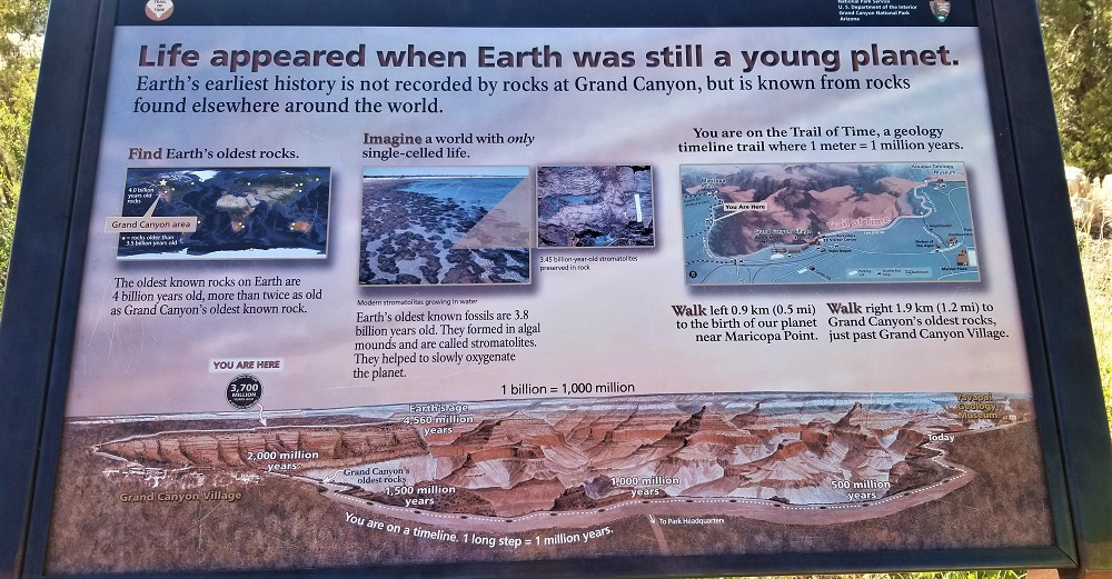 Rangeley, Gary and I walked on The Rim Trail following The Trail of Time, a geologically marked paved path identifying the history of the rocks, cliffs and canyons 3+ billion years ago.