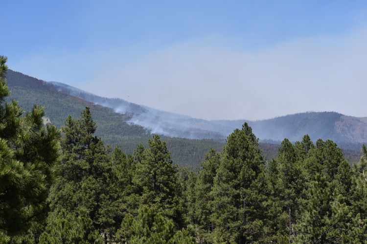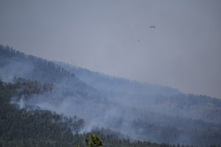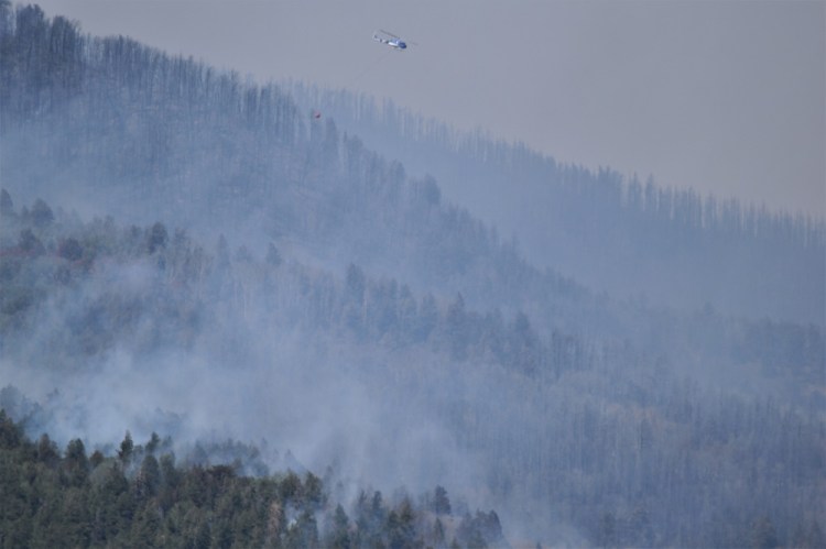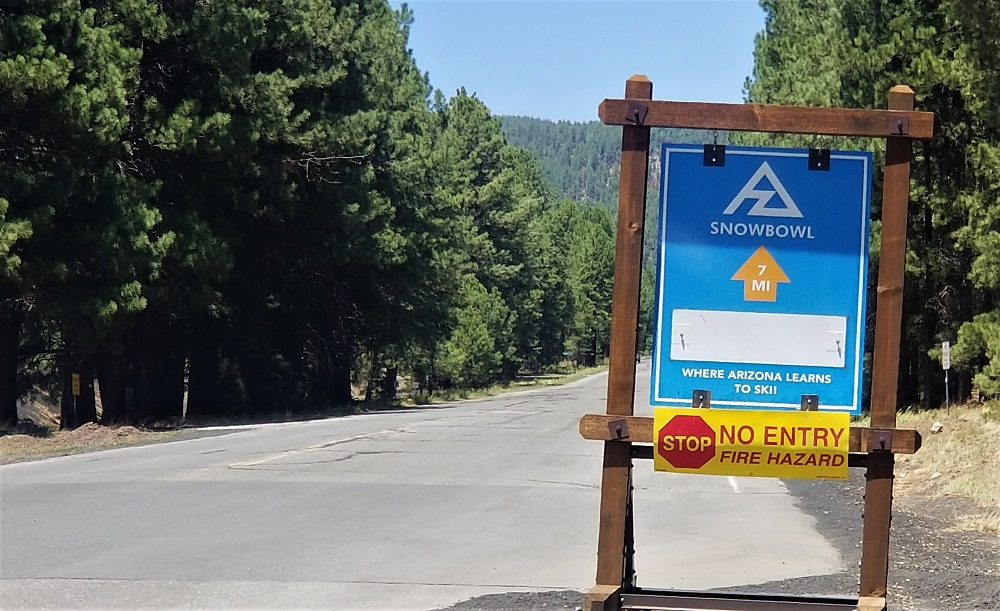 Flagstaff: Sadly, the Arizona Snowbowl Ski Area where we were going to hike was completely closed due to the fires. We headed into Flagstaff, about 6 miles away, but stopped to take some pictures of the helicopter pilots fighting the fires with hanging buckets of water retrieved from Flagstaff’s reservoir north of the city.