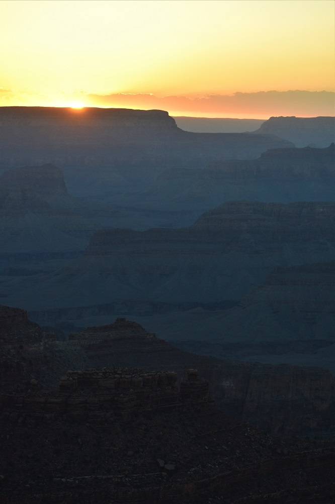 After checking into our hotel in Tusayan, Arizona, roughly 5 miles south of the entrance to the canyon we headed into the park for a night time visit. We decided on parking at the Yavapai Geological Museum to watch the 7:49pm sunset over the Grand Canyon. The experience was tremendous, as almost all unsets are, but sadly the forest fires in Flagstaff effected the air clearness and the Grand Canyon was very hazy : ( We still got some great shots.