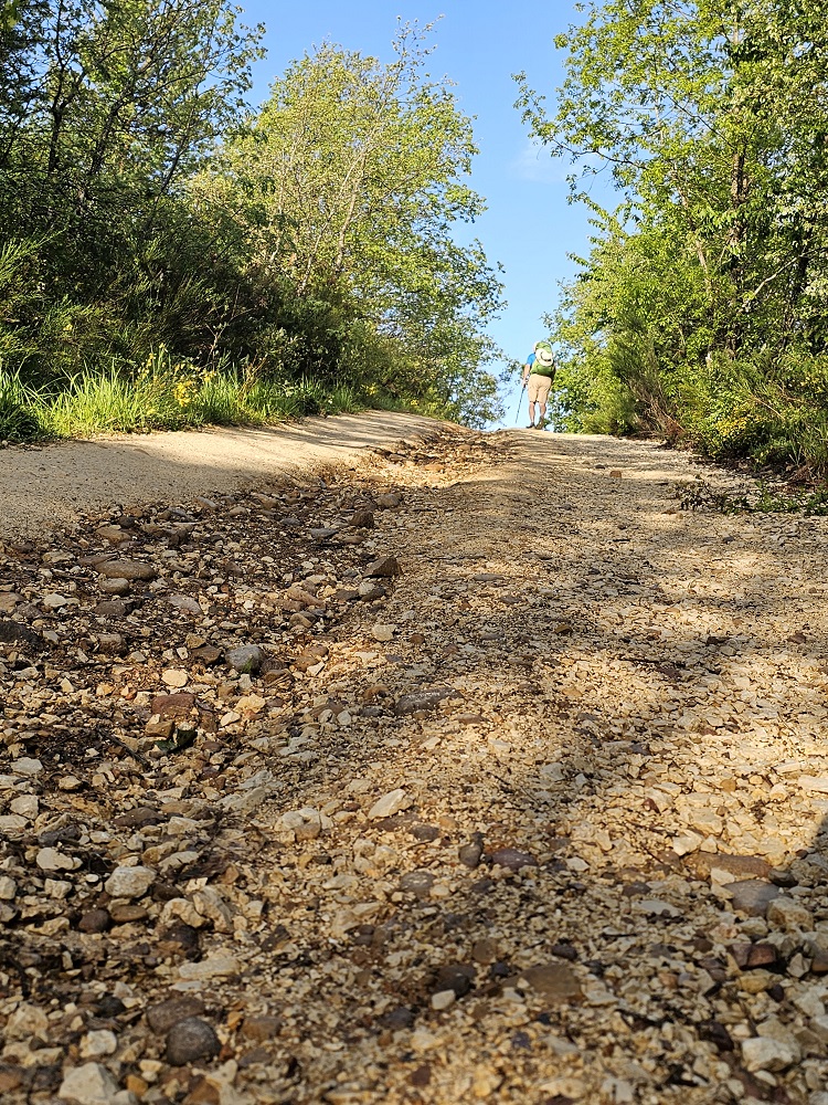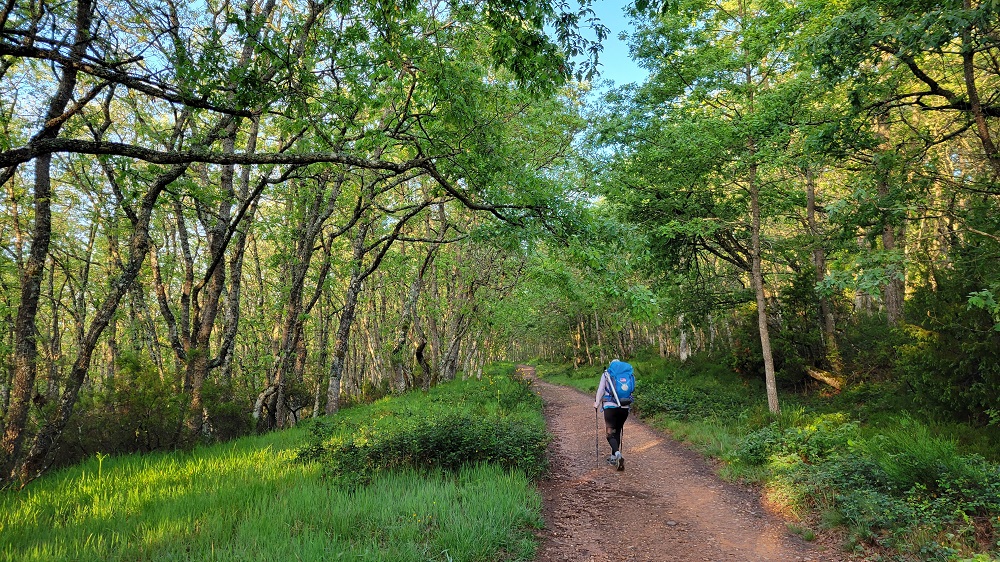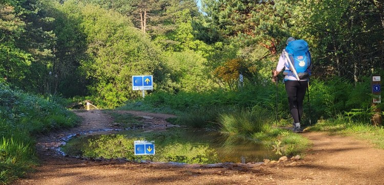We had a great forest walk after leaving Villafranca… although it was up, up, up at times, the hike filled our senses. Birds singing (more cuckoo cuckoo birds), the morning sun shone through the trees, the plants and ground smelled like rain and the ground was softer under our feet.