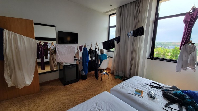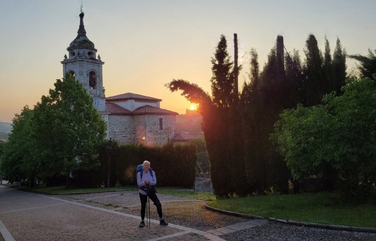 I had a tough day today. 17 miles was a bit too much for my knees. We ended up stopping multiple times (every couple miles) for me to stretch, put my feet up, and talk myself into keeping going 🙃 I enjoy the experience most moments and days, but today was just ‘one of those days’…. everyone gets at least one. It took us almost 10 hours (Sorry and thank you Gary, you are very patient!!) I was glad it was over. Gary was fine. He walked to the store after a shower and rest. He met some people at a hotel bar and enjoyed an evening out…until it became quite loud with thunder! After arriving back at our stop for the night in Villafranca Montes de Oca the rains came and a single, VERY bright flash of lighting immediately followed by an unforgettable crack of thunder. Phew! That was close. He arrived dry, just in time!