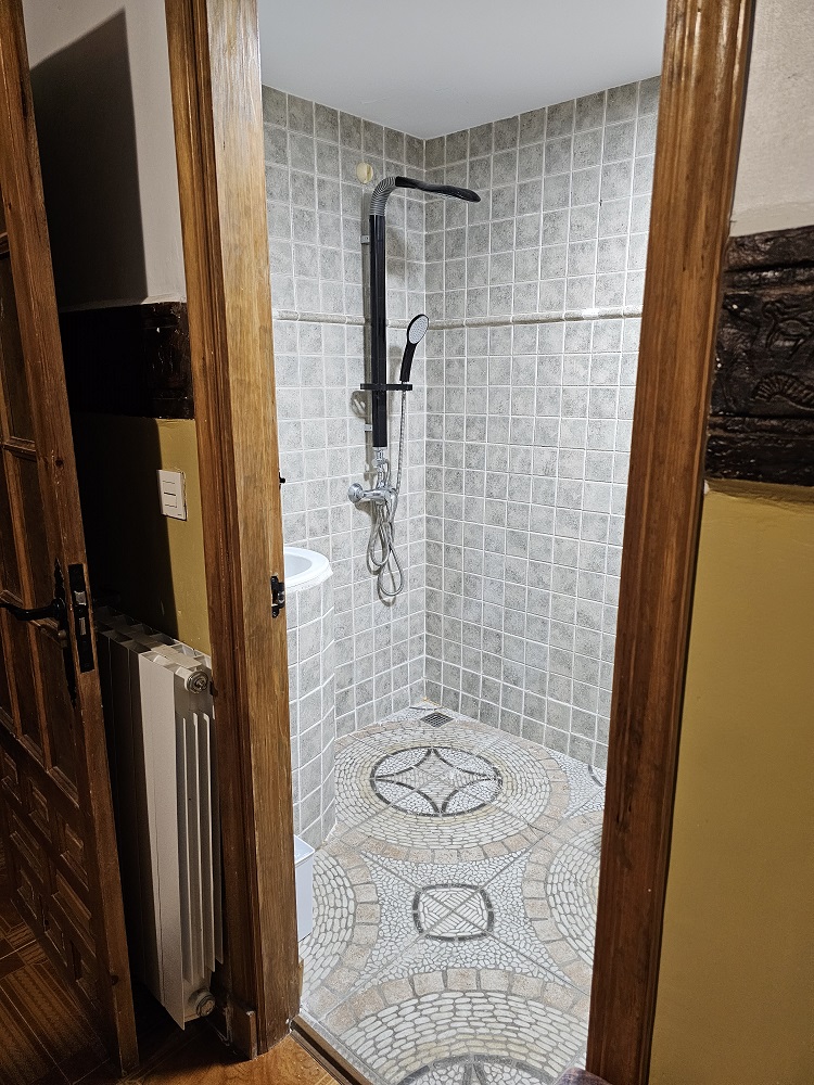 E: Dinner last night at our Albergue Via Minera was fun. I forgot to take a picture during the meal. 😦 We only had 12 people at dinner but a diverse crowd, which is usual on the Camino. There were a few from the US, including a just graduated from high school student and his mom, a dad and his son who just graduated from college, a Korean woman, two from Spain and a Dutch woman. English and a lot of single international words and jesters make communication surprisingly easy.