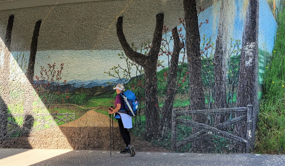 We check periodically to see if there are any Geocaches in the areas we stay or walk through. If you are unfamiliar with Geocaching: simply put, a treasure hunt for a small container, hidden in a public place, using your phone’s GPS, all over the world. Coordinates are posted online, you log into http://www.Geocaching.com and can search for the locations of these little containers. You sign a log in the find and online. Gary has over 1,600 finds. At least one in all 50 states in the US and 14 different countries throughout the world during our travels. We go for unusual places and hard to get finds, not high numbers of easy to find caches. We found three so far here on the Camino, there are hundreds if you really wanted to stop a lot!