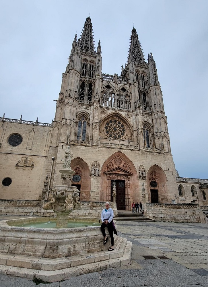 Google Translate is wonderful. We spoke with a gentleman from Brazil who was speaking Spanish to us – he lives in Burgos now. He began to call us as we were on a lower level in the park than he was and he was trying to explain how to get to the Cathedral. Apparently, the path we were on could not access the bridge to the Cathedral further up the path without going through the river! He pulled out his phone and proceeded to use Google Translate to tell us that he is going in that direction and would walk us there. We “chatted” back and forth via our phones. People here go out of their way to be sure you are on the Camino and going the correct direction. Even if they have to take you there themselves. Our Brazilian gentleman was very helpful and a pleasure to speak with.