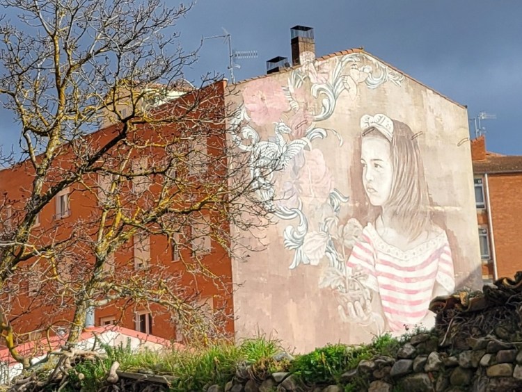 Back to the walk. It was 7.5 miles to the first town. Nothing open. On to town #2, another 4.5 miles. On the way a biker passed me. He stopped to chat. He is from France doing a 3 month loop through Spain and Portugal and then back to his house in France. Not sure why he choose winter to ride. I ended up seeing him again in Burgos at the laundromat. In the second town everything was also closed. I asked a man getting out of his car for ideas. I knocked on a local’s door and asked him as well. The Spanish are so friendly and helpful. He did not know the guy but the two of them chatted and said “lo siento” sorry, nothing is open. I went to the albergue and tried the front door and it was unlocked. I sat on the stairs and got a hot chocolate out of the vending machine. A woman saw me who was opening the café next door in 30 minutes and she invited me in, so I had a warm spot and a bathroom. I bought a croissant and was on my way. So nice of everyone, and again no English was spoken and my Spanish is not good, so lots of hand gestures.