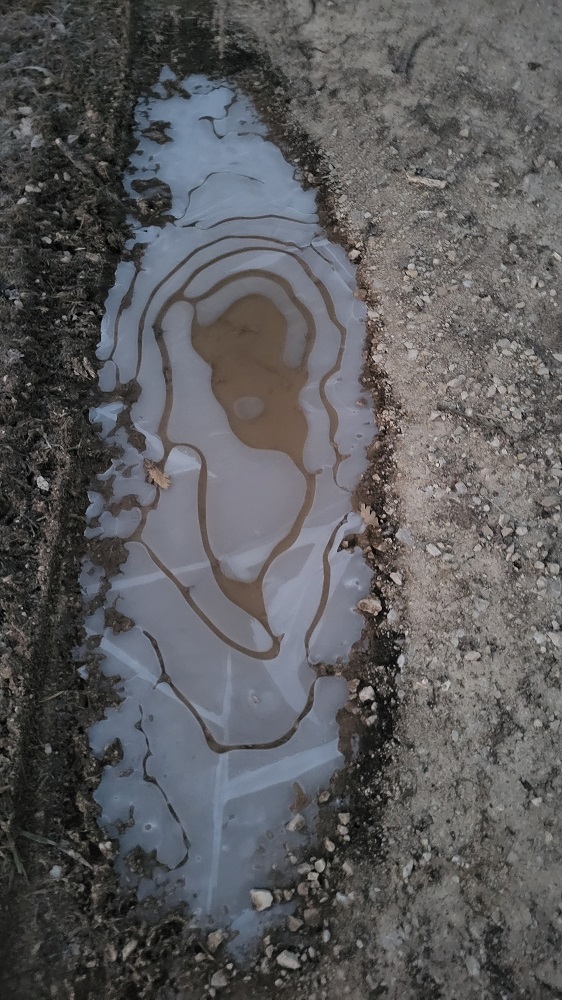 Now to continue walking. The sun was nice, but there was also a chilling wind. Today had quite a bit of road walking. At the 16 mile mark there was an open café. I got a coke and an order of french fries. There were about 8 locals, so nice to see people out and about. One woman had her two dogs inside with her.