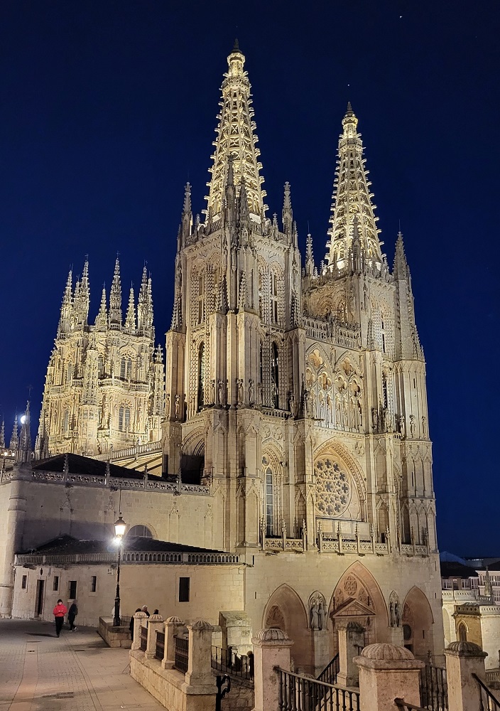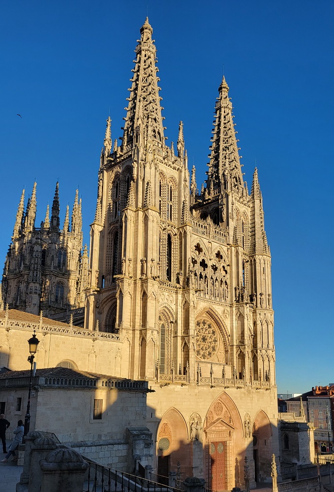 The cold has arrived. The temperature this morning was 21 and it reached 36 for a high. Throw in the breeze and it was quite chilly. Three days ago I had wanted to get a day ahead of “schedule”. Walking in the winter there are very few places open to eat and sleep, so you end up following the regular stages. In the summer we get off the “schedule” to avoid crowds. I also want to be on schedule to see people. Florida was planning to take a day off in Logrono, so I had no incentive to stay on this schedule, so I have walked extra each of the past few days. Yesterday I had an Albergue in Espinosa that would open for me – their words. I had tried a place in Villafranca, but she had told me she was closed. She texted me 30 minutes later and said she would open for me as well. This allowed me to walk an extra 2.5 miles and get within 26 miles of Burgos. My plan was to walk till about 4 and call a taxi. At 3:15 I had walked 21 miles and was in the outskirts of the city. I stopped at a restaurant and the bartender called me a cab. Neither the bartender nor the cab driver spoke English, so as we are driving I am checking my google maps to make sure we are going to the right spot. I just wanted to make sure I had understood well enough. All worked out great. I am staying in a nice hotel, and being in the city the employees do speak English.