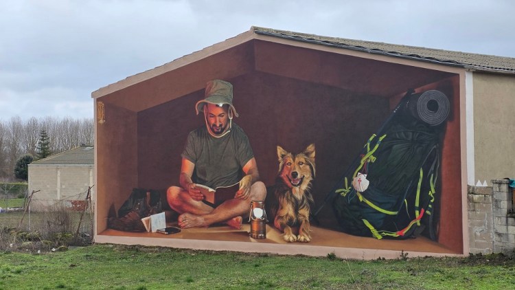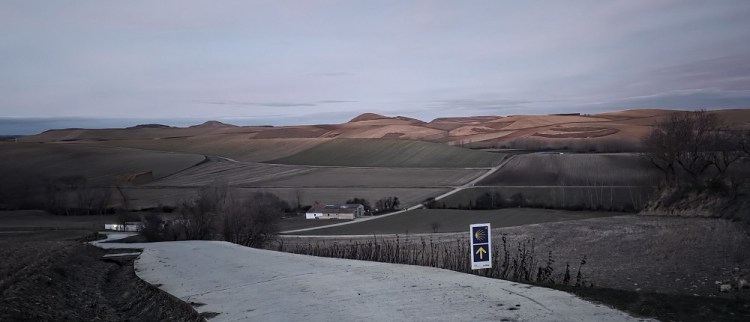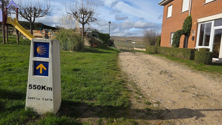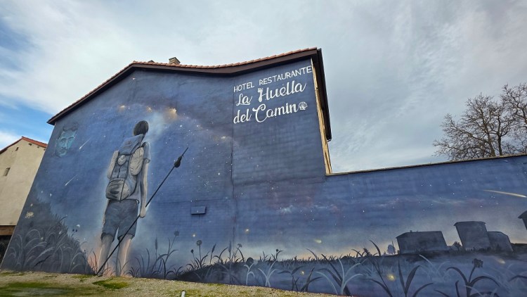 Today was another great day for walking. Temperatures were in the mid 40s and partly cloudy all day. There was some wind mid day, but no big deal. I think I am the only pilgrim in town. The group is 4 miles back. The only bar in town closed at 4:30. The little market is closed for the winter, so I bought food in the town of Belarado, 7 miles back, and carried it here. That is one of the added challenges of a winter walk, you have to figure out food and lodging. In summer both are available every few miles.