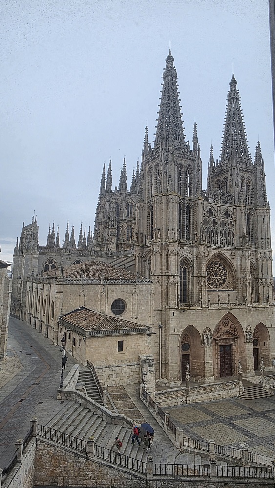 I am in a nice hotel, a benefit of being in a city. I upgraded to a cathedral view, so it is $80 per night. They heat the rooms 24 hours a day, so everything was warm where I walked in the room. Burgos is basically on a hill. Everything is stairs, very few ramps. Being right next to the cathedral there is very limited car access. Taxis can travel inside the barrier, but you still have to go down 1 ½ flights of stairs to a landing, then up 4 steps to get to the lobby. A couple from Holland had just gotten out of a taxi with two bags, the husband was using a walker, so I grabbed their suitcases and brought them to the lobby for them. Burgos is a tough city to get around with a physical limitation.