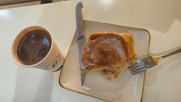 I arrived at my favorite restaurant at 11. Trouble is they open at noon. OK, plan B, there is a bakery around the corner that sells cinnamon rolls that I saw while walking around after the mass last night. Jackpot. And they have the real Spanish hot chocolate. Normally I get a Cola Cao, which is a chocolate powder you put in hot milk. The hot chocolate is like a hot runny pudding. They normally sell it with churros. Now I have to catch a cab 8.5 miles forward and walk back before the 3:30 closing time. No problem, I made it at 3:05 and enjoyed a barbeque pizza, a mixed salad and a hot out of the oven roll. The walk this afternoon was pretty boring. I did see 2 pilgrims moving forward. Tomorrow I will taxi forward to the same spot I started this afternoon and continue forward. I am walking 5 “extra” miles, so I will be a full day ahead of the typical schedule.