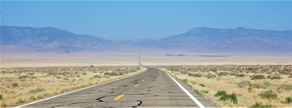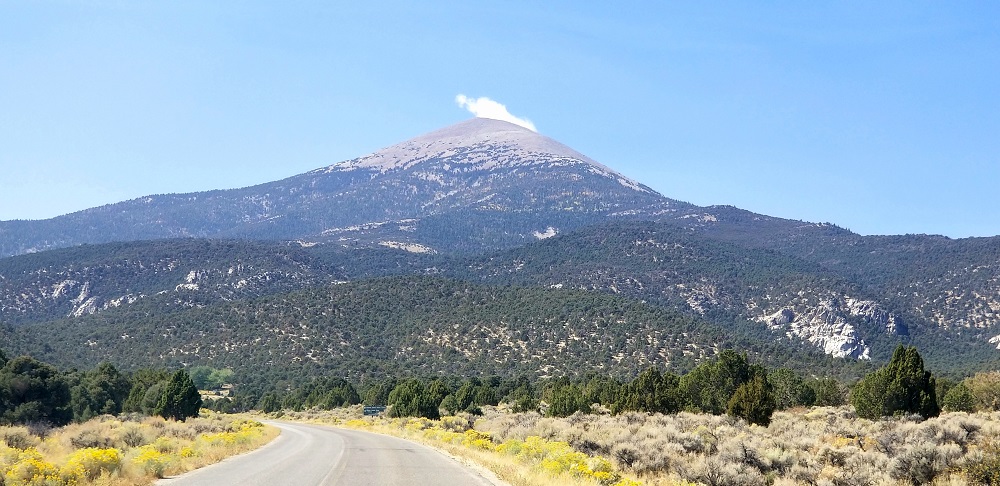 We left Cedar City, UT heading for a very small town, Baker, NV, just across the border. UT Route 21 was another straight long road with a high point of 6,700 ft. Crazy but fun going through nothing for at least 85 miles. At one point we were going downhill gradually and Gary said he hadn’t touched the gas pedal for miles! We saw maybe 8 vehicles coming our way and no one behind us or in front of us the whole way! Tomorrow is the day we travel from NV back through UT on US Route 50, dubbed “The Loneliest Road in America” but today was a close second! It’s another hazy day in the distance. But the pictures still give you the main idea of how desolate these south west Utah roads are!