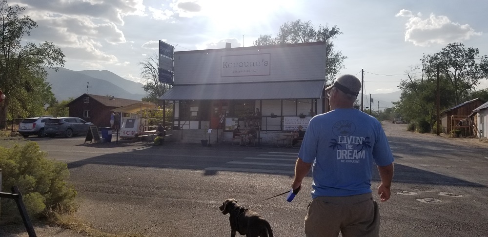 We checked into Whispering Elm Motel and Campground across from the entrance road to the park and walking distance to “town” and the visitor center. I place quotes around town because Baker, NV has 68 people living here so says a 2010 census. It has a gas station, a few lodging options, campgrounds, tent sites, a coffee food truck with a wonderful espresso maker, and a well-attended restaurant called Kerouac’s that opened in 2017. We had a beer there, outside, and loved the vibe (see pics).