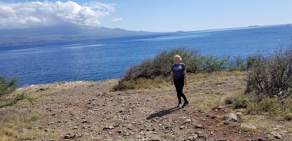 Due to the luggage coming in later and the hotel room not being ready until 4pm, we picked up our rental car and drove across the Isthmus of the island to Ma’alea, a 20-minute drive. Gary looked up a restaurant on Google and we hit the jackpot. Nalu’s South Shore Grill was fabulous! We split a Corn Flake and toasted macadamia nut encrusted French Toast stuffed with a lilikoi (passion fruit) marmalade cream with real maple syrup which, coming from VT originally, is a big preference of ours. We also shared a fruit platter with local papaya, bananas, pineapple and grapes; fabulous seeded and good oatmeal granola and Greek yogurt …need I say more?!