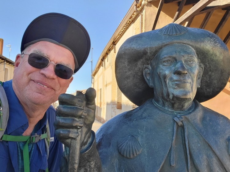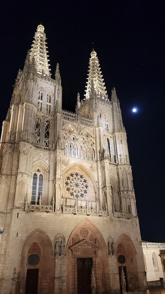 Last night I met Florida at the 7:30 mass in a side chapel of the main cathedral. Italy, China and a new person from Spain were there. He is also mid 30’s like China and Italy. Italy and Spain did not like the idea of staying in Hornillos, so they are walking 26 miles today, to Castrojerez. I took 2 days and taxied back last night. After the mass Florida and I went to dinner at an Italian restaurant. We ate and chatted till 10, then headed back to our respective hotels. Florida mentioned this was only his second nice meal of the trip. The benefits of staying in a city. He is staying in Burgos, and I taxied back to Hornillos and walked to Castrojerez, so I am now 2 days ahead of him.