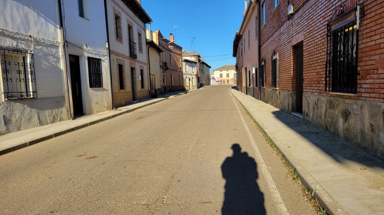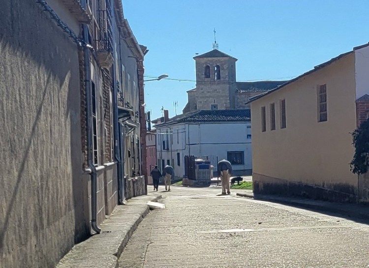 Walking through the town of Boadilla del Camino I looked up and saw a horse go through the intersection ahead of me. I figured there was more to the story. When I got to the road that crossed I looked down and there was an older gentleman with a horse on lead, followed by a loose dog and followed by a loose horse, just walking down the main street of the small town. Not sure where they were headed. Obviously not much traffic in this town.
