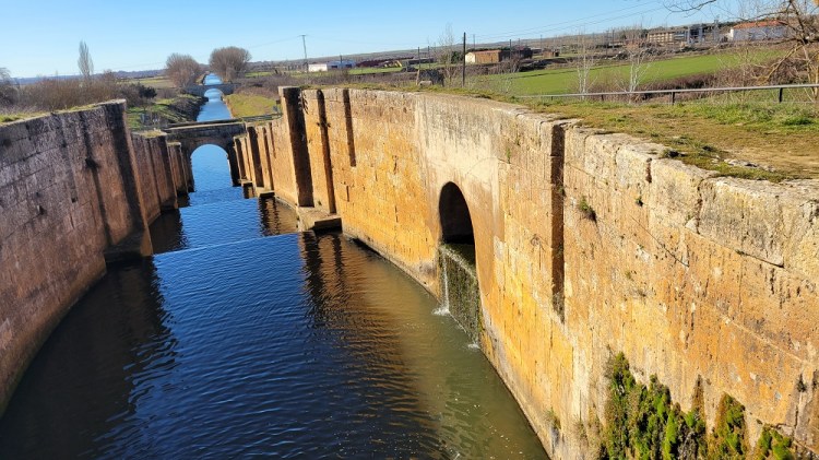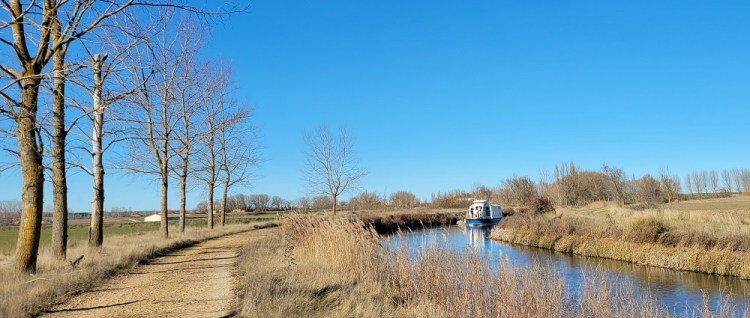 The final couple miles into Fromista are along a canal. This summer we took a boat, instead of walking. To my surprise the boat was running today. I saw it headed to the dock at the end. There was 1 pilgrim on board doing the round trip for $2. There was another woman on board, but that was it besides the captain. It left the Fromista dock at 12:30, for it’s only departure of the day.