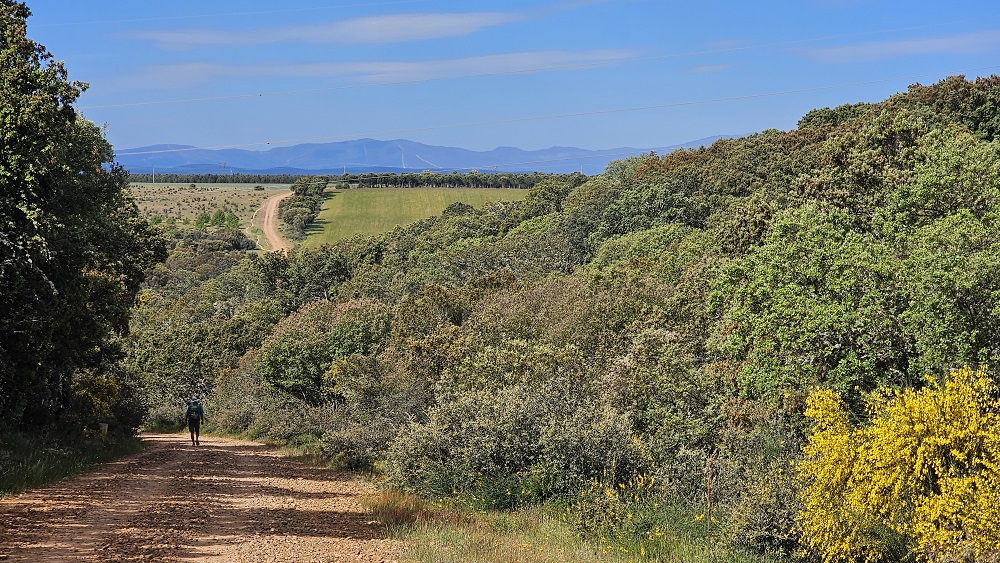 The mountain views, stone path and walking through some forested areas, with a little vertical, were all welcome additions to today’s experiences. Foncebadon is at 4,600 feet in elevation. There is still snow visible on surrounding peaks.