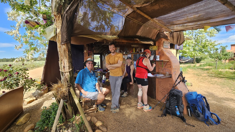 C & C found a great restaurant in the main square/ Plaza Mayor in Astorga and we all had beers, some food and, two hours later, finally got up from the table! ; ) We toured the Cathedral and then we headed out of town to a new (to us) place to stay. Hostal Rural Via Avis was a recommendation from another pilgrim. It’s awesome. The rooms are named for birds. Cooper and Chelsea got the Aguila (Eagle) room. There’s a beautiful common room with beer, wine and snacks you pay for on the honor system. The town of 45 people overlooks a lovely countryside and has three bars!