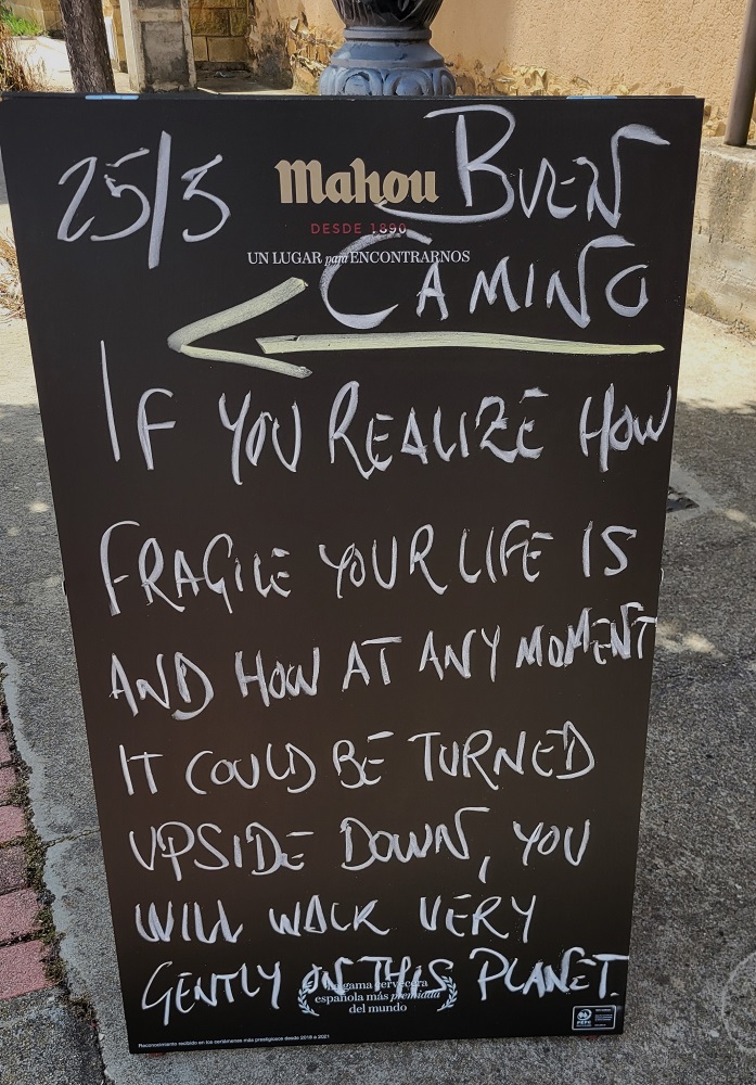 Elizabeth: Gary decided to leave early and do a sunrise walk alone this morning. He ended up finishing the 10.6 miles by 11AM in Foncebadon and had several hours to talk to his family in Vermont and get updates on his mom who is being overseen by Hospice at her assisted living home. We can not thank his two sisters in VT and his brother in Maine, for visiting Mom so often : )