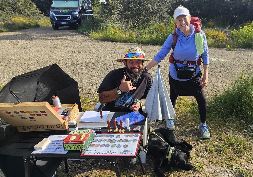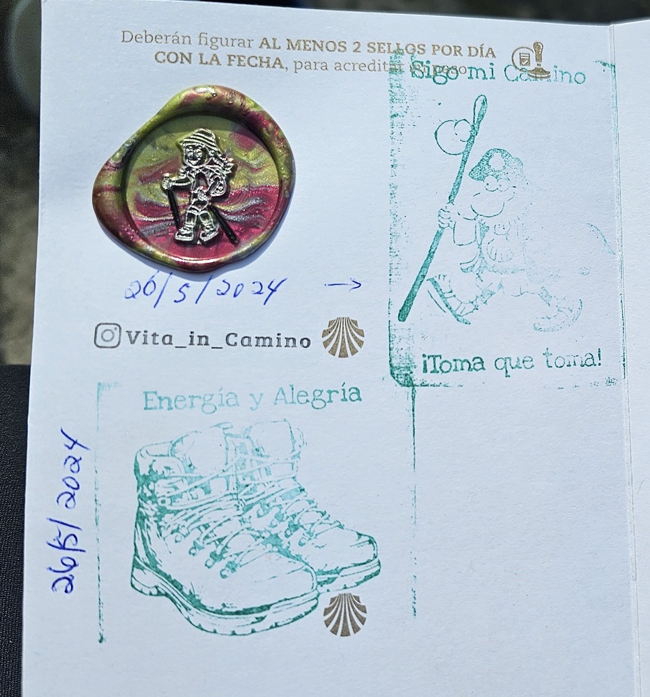 I did the first 3 miles by myself (not alone on the path, just not joined by my family). I enjoyed the inner reflection time. Got another unique and fun wax stamp (see picture) in my credential just before the local authorities showed up…I am not sure why they were there… but I high tailed it out of there for fear of a delay in my already late start.