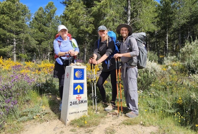 Chelsea & Cooper walked the first 3 miles together. They met up with me at a cafe in the first town. We walked the middle 4 miles all three of us, had a great stop to get a snack and do some stretching/yoga on a lawn and attend a Sunday mid-day mass. I left by myself, out of Rabanal. OK, to be honest, I skipped out on half the church service 🤫 I walked the last 3 miles into Foncebadon and met Gary, arriving around 2:45pm. The kids were not far behind. Both Gary and the kids lit candles at the church, at different times, for Gary’s mom.