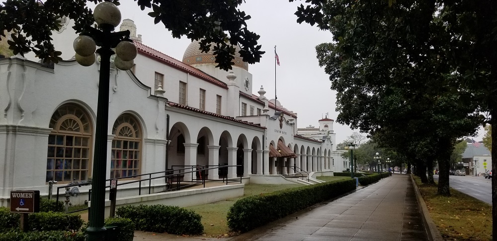 Since the rain was going to take over our first day here, we drove down Bathhouse Row (Central Ave) 3.5 miles from our hotel and checked out the visitor center to get a map. Many locations within this in-town national park are closed or have very limited hours or days of operation. But the visitor center placed maps and the ink stamp we get at each park on the front porch of this historic building, the old Fordyce Bathhouse built in 1915. It was the first bath house to close its doors in 1962 but by 1989 it had been fully restored and now houses the visitors center and a museum.
