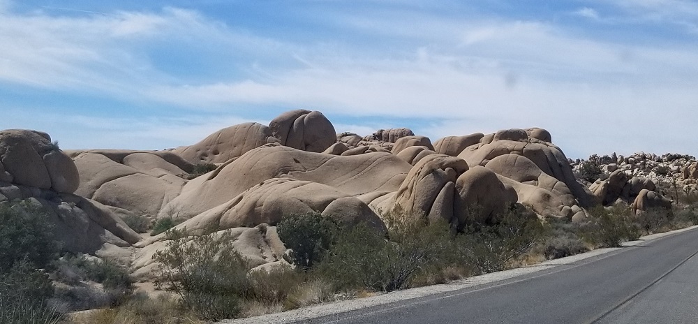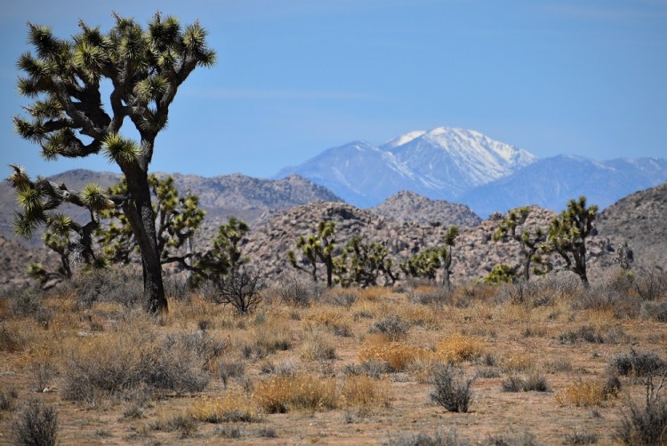 From Wikipedia – Covering large areas of the Colorado and Mojave Deserts and the Little San Bernardino Mountains, this desert landscape is populated by vast stands of Joshua trees. Large changes in elevation reveal various contrasting environments including bleached sand dunes, dry lakes, rugged mountains, and maze-like clusters of monzogranite monoliths.