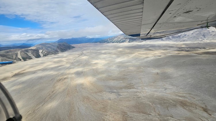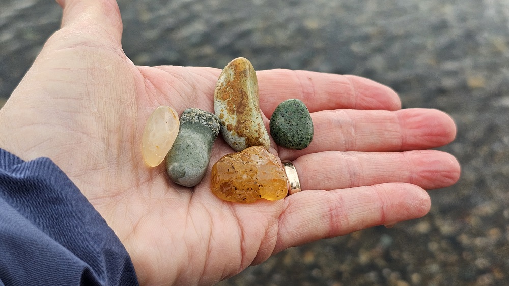 We landed on Nonvianuk Lake, enjoying the multicolored, naturally polished, stones deposited there after many years of tumbling down the various colored mountains, into the lake and eventually getting washed up on shore. There was an eagle feather on the beach which I left there as you are not supposed to take anything, especially eagle feathers, from national parks.