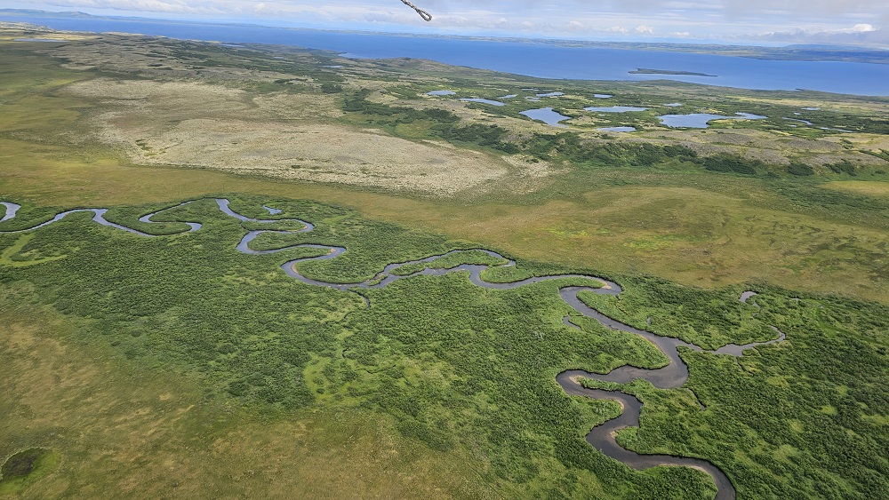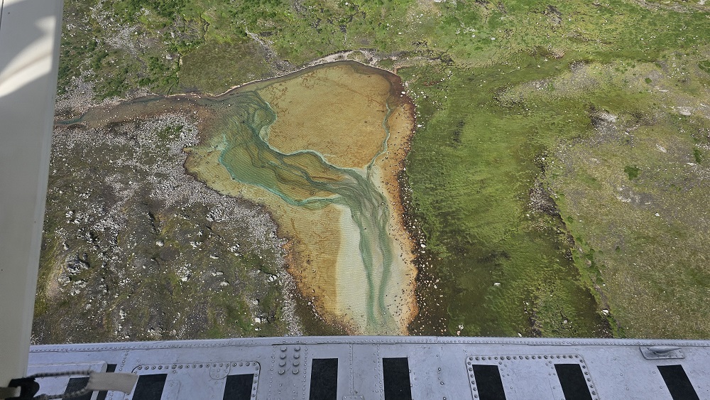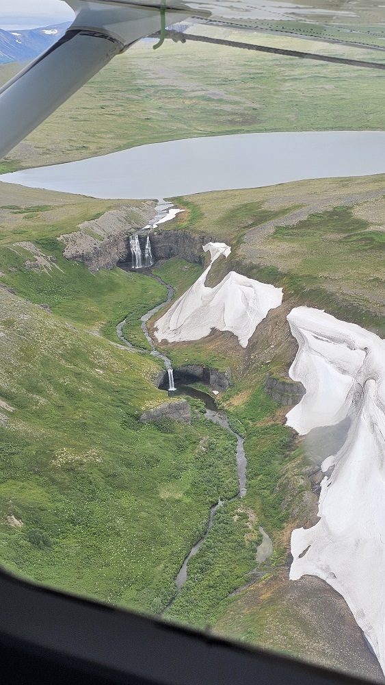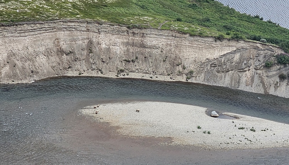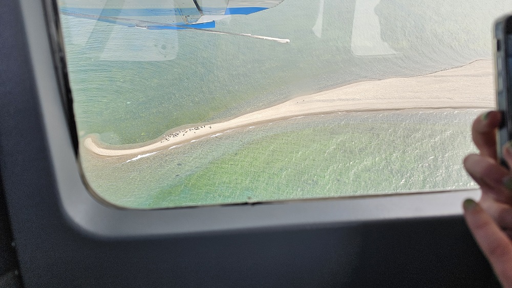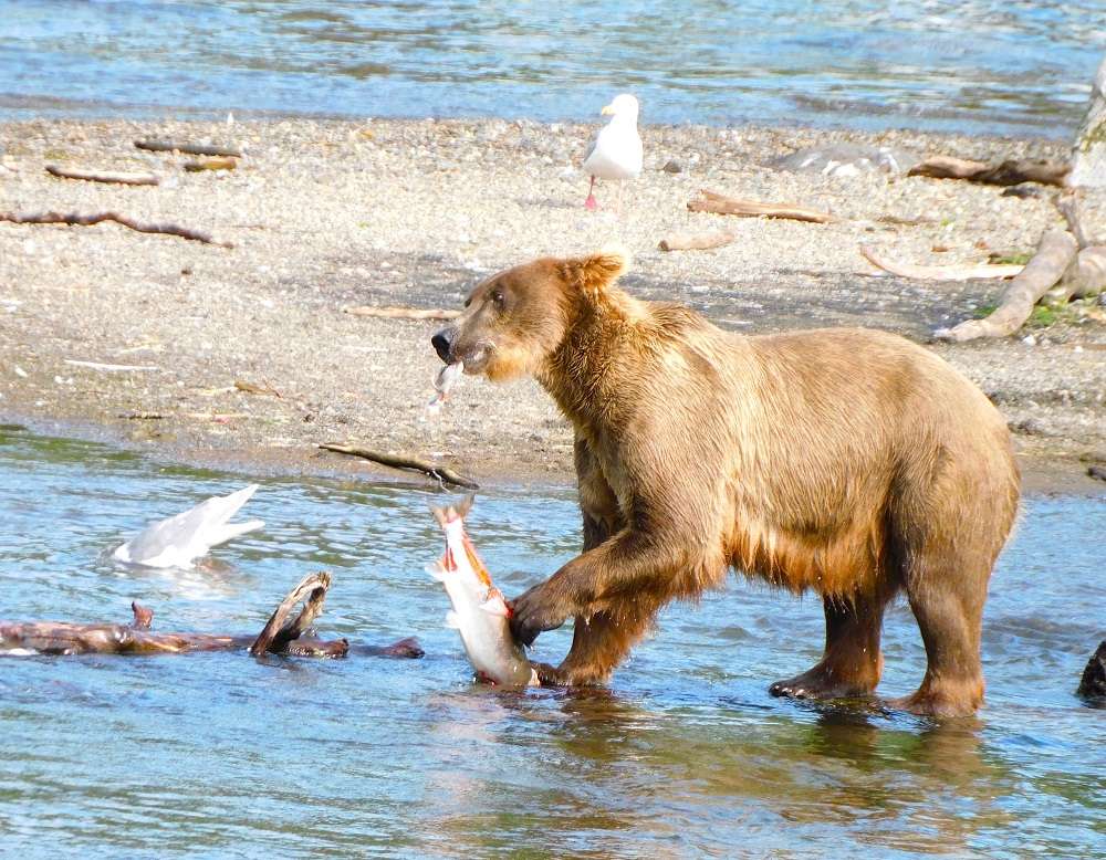 During the flight to and from Brooks Falls we saw beaver dams in remote streams, bear in rivers not at Brook Falls, caribou in groups on snow patches to get away from the bugs. We passed over numerous crystal clear blue lakes and saw the largest lake in AK. It is only one of two lakes, in the world, where fresh water seals live full time! And twice we saw seals on the beaches of small islands.