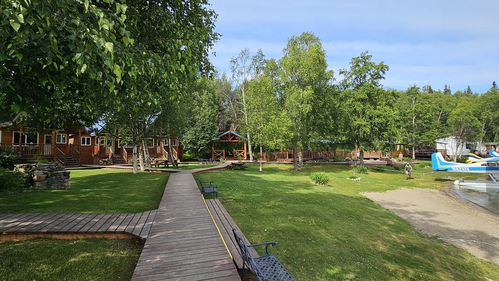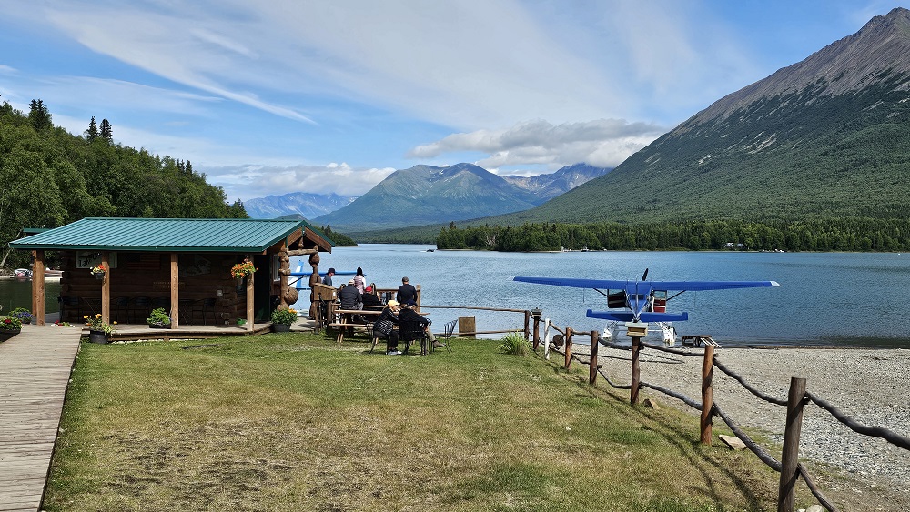 A little background as to why we chose this lodging, The Farm Lodge on Lake Clark in Port Alsworth, AK. We planned this trip around visiting Dick Proenneke’s Cabin on Twin Lakes, inside Lake Clark National Park. If you are not familiar with Dick Proenneke…at age 51 in the 1960’s, he wanted to build a remote log cabin, from scratch, by hand – no power tools – and live off the land for a year. He ended up staying in his cabin, primarily alone, for over 30 years! It can only be reached by float plane, then and now. Bob Swerer Productions has a couple videos narrated with footage Dick shot himself, over many years. His craftsmanship, ingenuity and survival skills are impressive, to say the least!! All Dick’s supplies, like film, some food, shovels and saws, were flown in by his good friend Babe (Leon) Alsworth. The founder of Port Alsworth on Lake Clark. Babe’s grandson, Glen Jr., now runs The Farm Lodge. A property that used to be Babe’s homestead and now has 10 units for public lodging. We are here, with Sherry and Craig, our Phoenix neighbors, for the week.