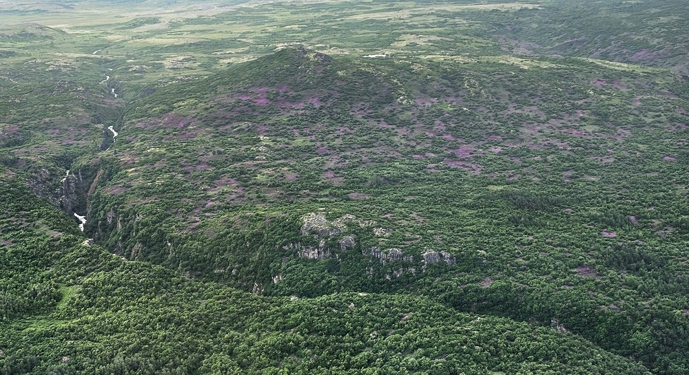 From Wikipedia – This park on the Alaska Peninsula protects the Valley of Ten Thousand Smokes, an ash flow formed by the 1912 eruption of Novarupta, as well as Mount Katmai. Over 2,000 grizzly bears come here each year to catch spawning salmon. Other wildlife includes caribou, wolves, moose, and wolverines.